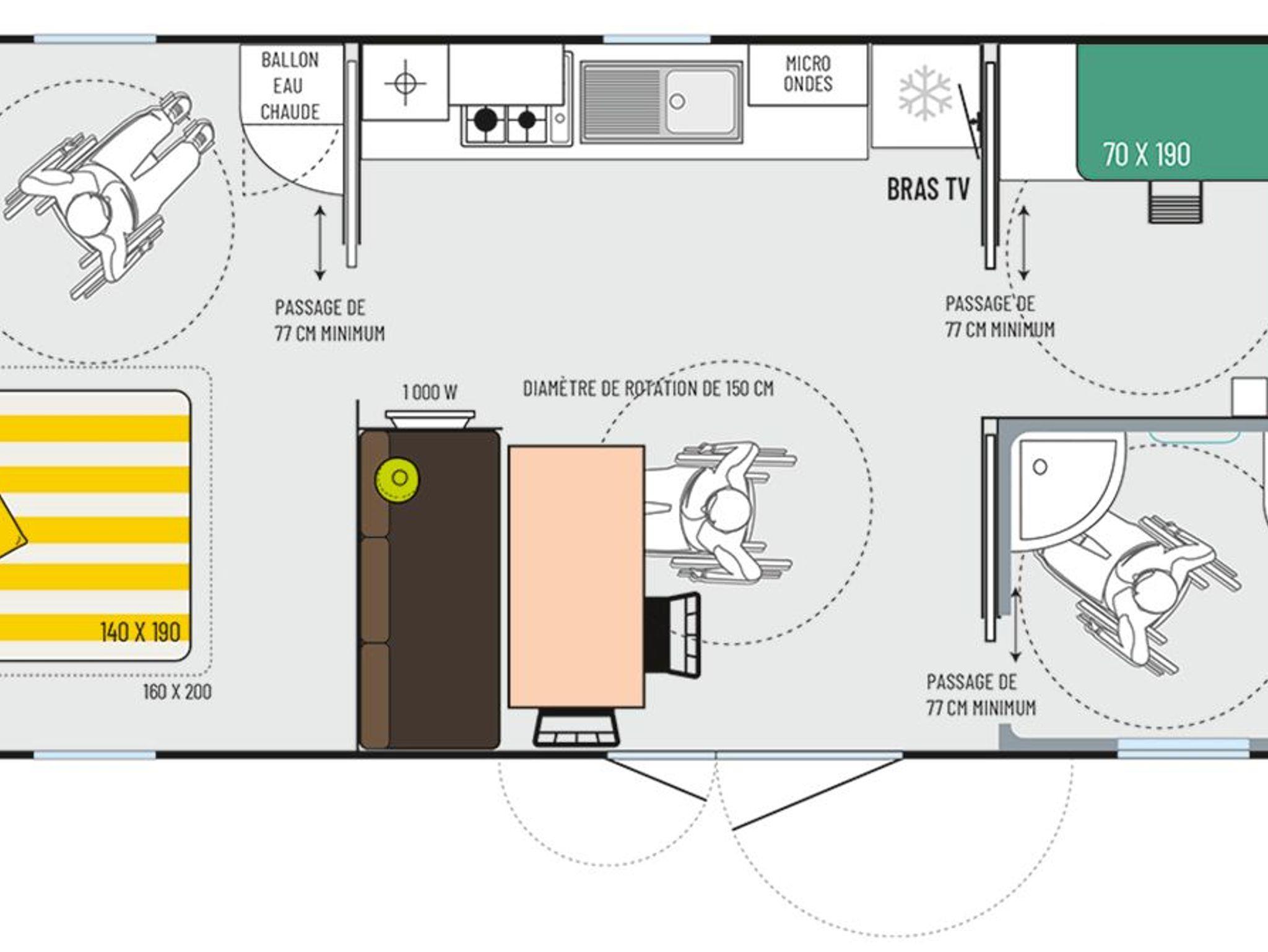 - 4 Mobilheime für bis zu 4 Personen (Aufbettung für 5. Person möglich)