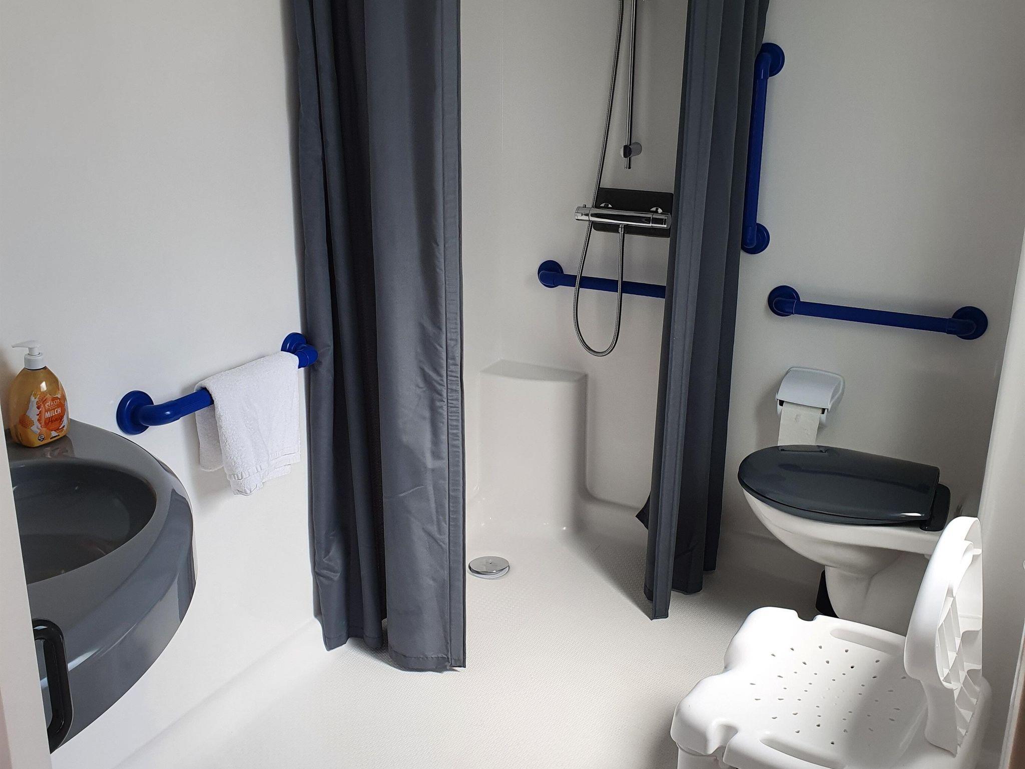 Damit jeder den Urlaub unbeschwert genießen kann, bieten wir diese Heide-Lodge für Menschen mit (oder ohne) eingeschränkter Mobilität an. Auf 32,5 m² finden 4 Personen Platz für gemeinsame gemütliche Stunden. Diese Heide-Lodge bietet mit besonders breiten Türen, Wendebereichen und einem komplett ausgestatteten Bad optimale Barrierefreiheit. Bettwäsche, Handtücher, Internet, Nebenkosten und Endreinigung sind im Preis enthalten.