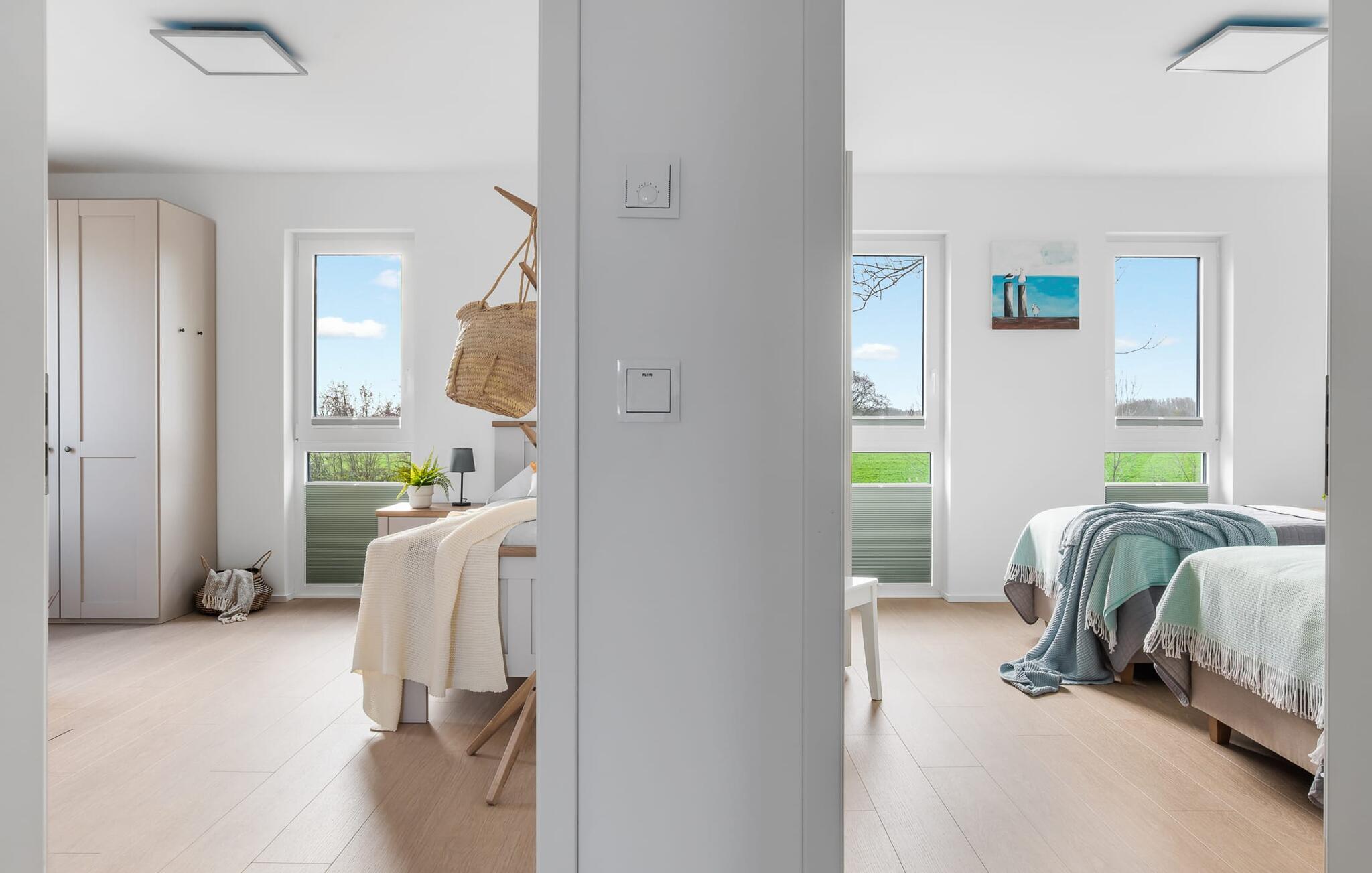 SOMMERWIND er en rummelig og rummelig maisonette ferielejlighed på 1. og 2. sal med direkte udsigt til de naturbevarende strandenge og marker. Sandstranden Weidefelder med kiosk, restaurant og strandstole ligger i gåafstand og er et attraktivt rejsemål på alle tider af året. Minigolfbanen med maritimt tema ligger også i umiddelbar nærhed og glæder både store og små. Når I træder ind i ferielejligheden på første sal, begynder nedbremsningen fra allerførste øjeblik. I er direkte i afslapningsområdet i SOMMERWIND. Lejlighedens tre soveværelser er placeret på denne etage. Uanset hvilket soveværelse I vælger, kan I være sikker på en afslappende søvn. Hvert af soveværelserne er udstyret med et fjernsyn. I det store soveværelse inviterer en stor dobbeltseng til at drømme. Skal I arbejde på en eller to småting, mens I er på ferie, er det nemt muligt her, da I finder et stort skrivebord med en ekstra skærm. Der er også et soveværelse med en lille dobbeltseng til rådighed. Det tredje soveværelse inviterer jer til at sove godt med to enkeltsenge. På denne etage er der også et veludstyret badeværelse med bruser i gulvniveau og infrarød sauna. En oase af velvære, der sikrer afslapning i hver sæson. En gang på anden sal lever SOMMERWIND op til sit navn. Her bydes I velkommen af gulv-til-loft vinduesfronten med den tilstødende terrasse med strandstol og udsigt til de naturbeskyttede strandenge. At komme ind og straks føle sig hjemme er én ting. At slappe af i den hyggelige opholdsstue, nyde naturens fred og ro ud af vinduet eller se tv er ren afslapning og afslapning! Der er også en in-house Netflix-adgang og en Bluetooth-boks til jeres underholdning. I den kolde årstid giver pejsen hyggelige timer. Med få enkle trin kan opholdsrummet omdannes til et ekstra soveplads (1,40 mx 2 m). Takket være den højkvalitets lamelramme kan I sove her, som I er på cloud nine. Det integrerede køkken er perfekt udstyret, og det er sjovt at lave mad sammen. Så nyd de færdige lækkerier på terrassen eller start en hyggelig grillaften... Det er ren ferie. Direkte fra opholdsområdet kommer man ind på den store terrasse med syd-vest orientering. Vender mod bagsiden med udsigt til de naturbevarende strandenge, marker og havet, er hyggelige timer garanteret. Et andet komplet badeværelse med badekar runder ideelt set hele pakken af til en afslappende ferie. Foran ferielejligheden finder I jeres egen parkeringsplads. Vores foretrukne sted: at se ud over markerne på terrassen og nyde SOMMERVINDEN... Bemærk venligst: OstseeResort Olpenitz er meget populært, og der bygges fortsat i parken. Ikke desto mindre kan I se frem til en 5-stjernet standard og et førsteklasses ophold. Byggeaktiviteterne kommer ikke til at forstyrre jer på ferien, og derfor gives der ikke yderligere afslag i prisen.