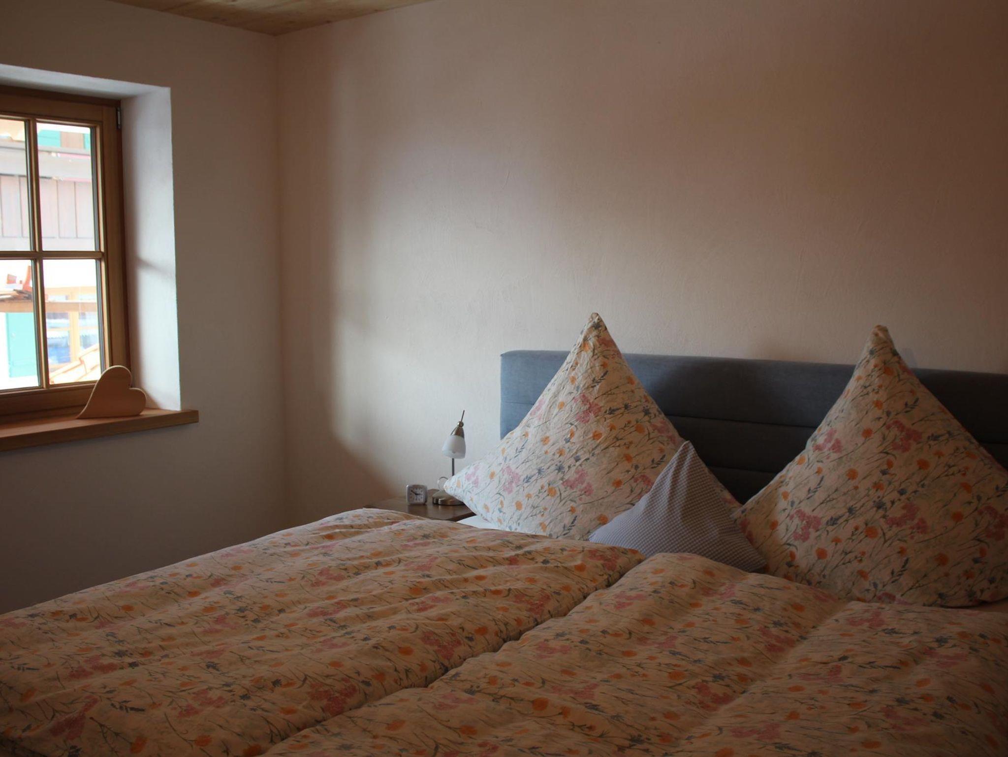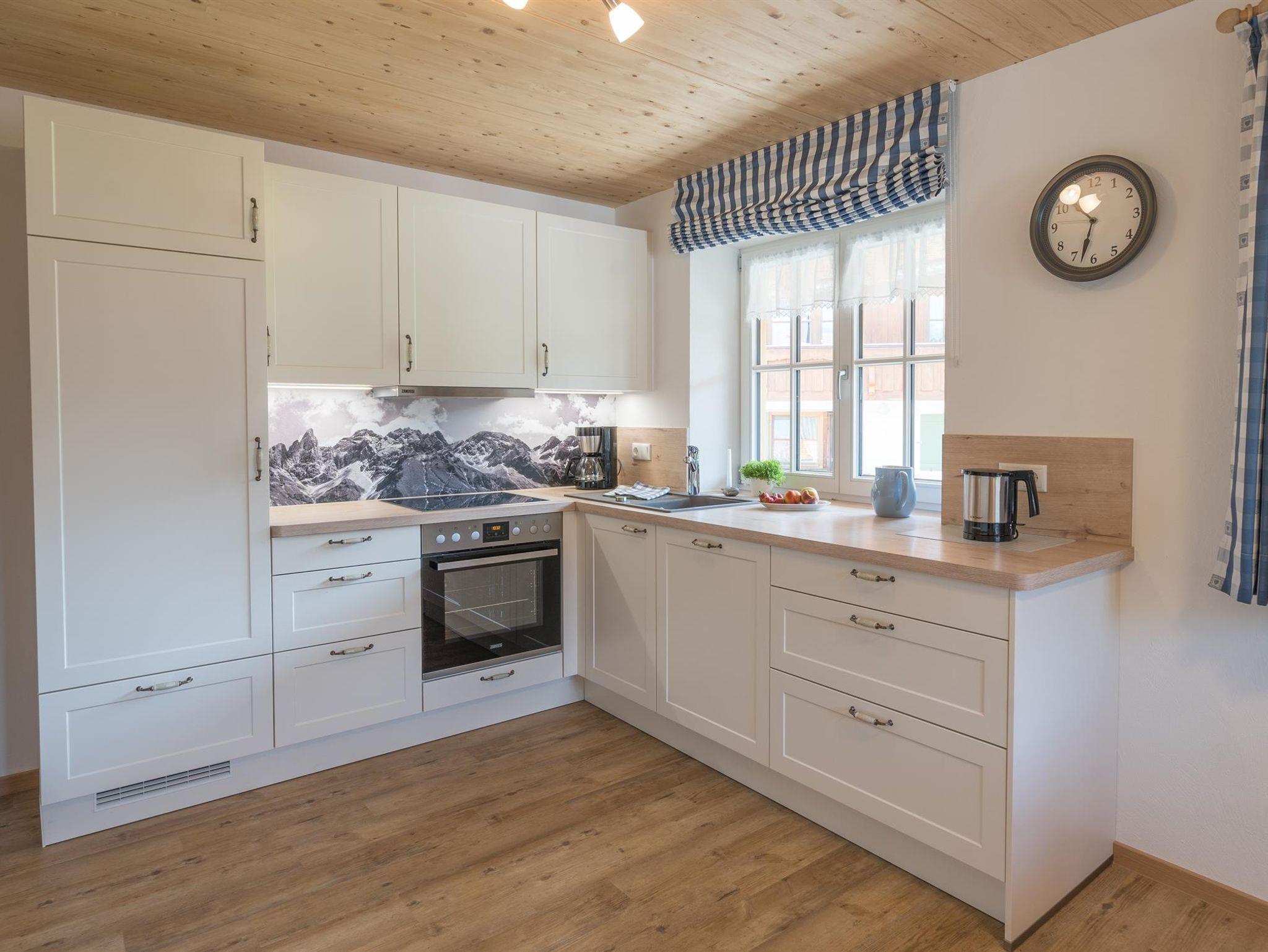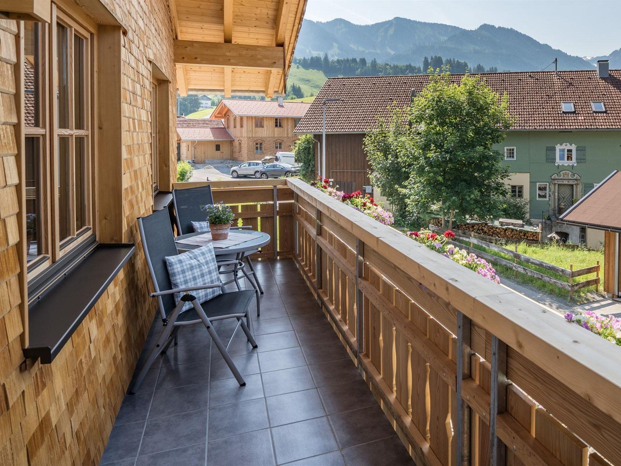 Die Ferienwohnung liegt im ersten Obergeschoss. Auf 98m2 befinden sich 2 Schlafzimmer (mit 2 und 3 Betten), ein großes Badezimmer mit Waschbecken, Toilette, Dusche und Badewanne und ein separates WC. Unsere Küche ist ausgestattet mit einer Spülmaschine, Elektroherd und Backofen. Kleingeräte wie Wasserkocher, Eierkocher, Toaster und Kaffeemaschine sind vorhanden. Der gemütliche Essbereich lädt zu einem ausgiebigen Frühstück, Mittag- oder Abendessen ein. Ein großes Sofa, TV und eine kleine Sitzgruppe finden Sie im Wohnzimmer. Von dort aus gelangen Sie auf den großen Südbalkon mit wunderbarem Bergblick auf das Rubihorn, die Hörnerkette und den Allgäuer Hauptkamm.