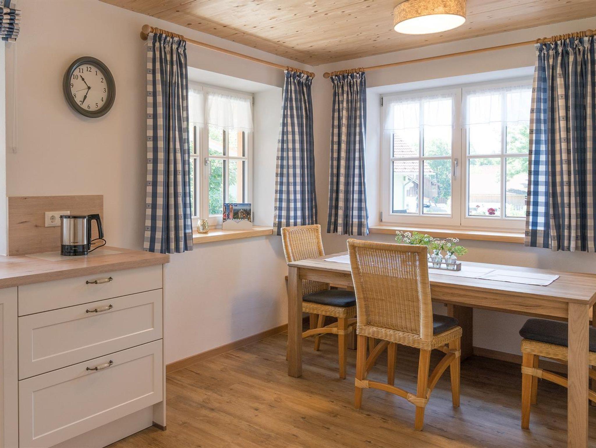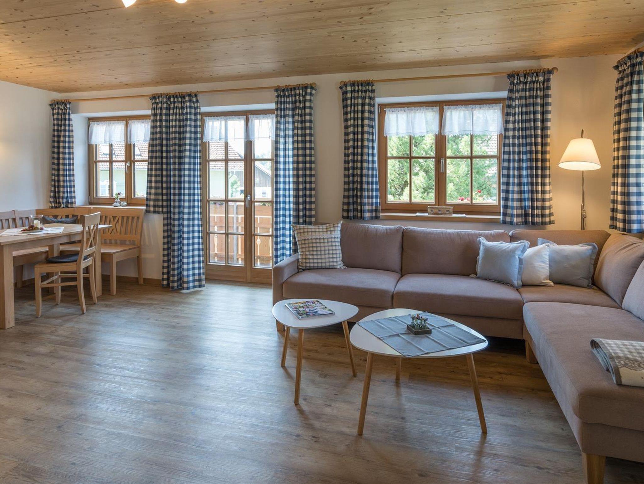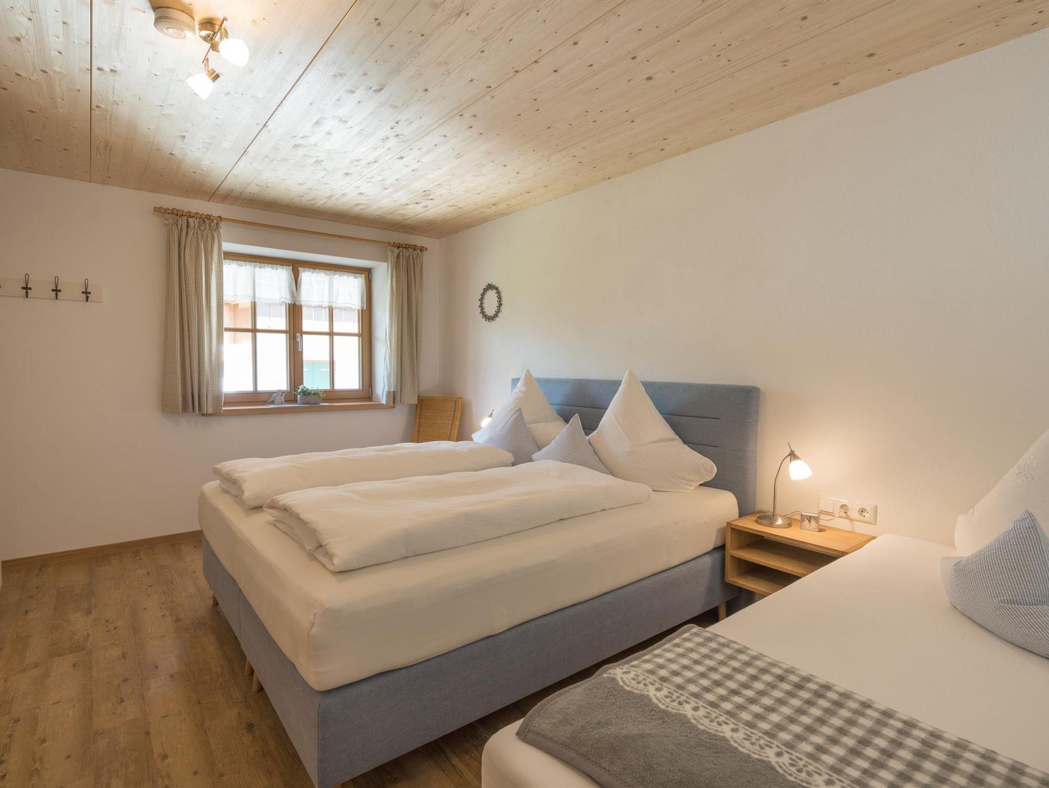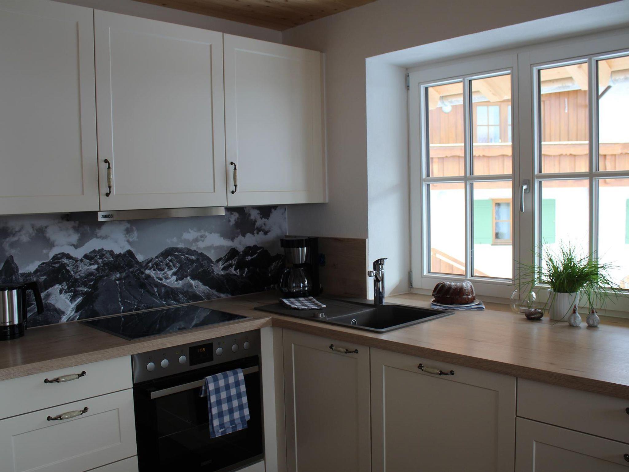 Die Ferienwohnung liegt im ersten Obergeschoss. Auf 98m2 befinden sich 2 Schlafzimmer (mit 2 und 3 Betten), ein großes Badezimmer mit Waschbecken, Toilette, Dusche und Badewanne und ein separates WC. Unsere Küche ist ausgestattet mit einer Spülmaschine, Elektroherd und Backofen. Kleingeräte wie Wasserkocher, Eierkocher, Toaster und Kaffeemaschine sind vorhanden. Der gemütliche Essbereich lädt zu einem ausgiebigen Frühstück, Mittag- oder Abendessen ein. Ein großes Sofa, TV und eine kleine Sitzgruppe finden Sie im Wohnzimmer. Von dort aus gelangen Sie auf den großen Südbalkon mit wunderbarem Bergblick auf das Rubihorn, die Hörnerkette und den Allgäuer Hauptkamm.