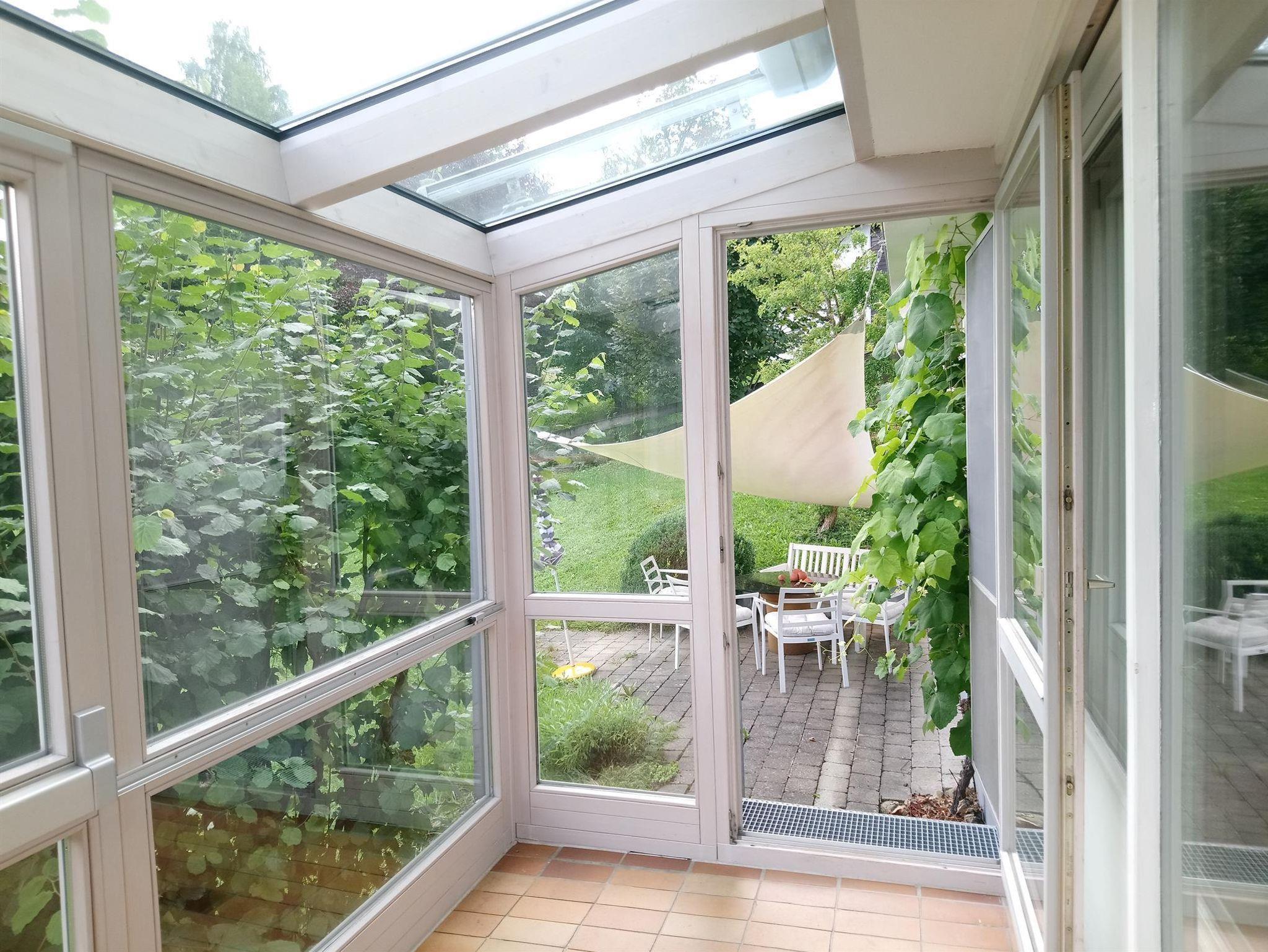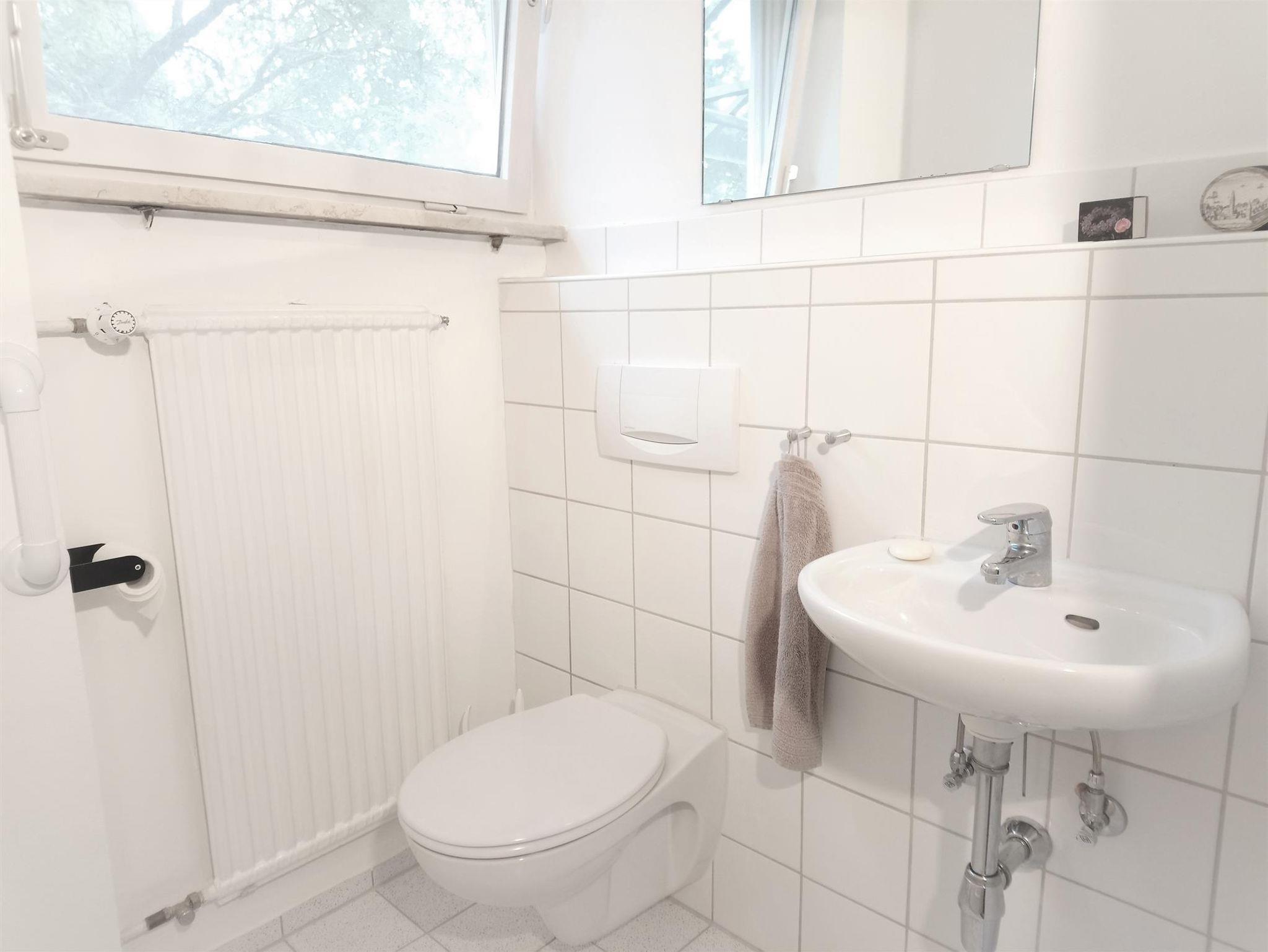 Wohn-, Schlafzimmer, die voll ausgestattete Küche, Bad mit Badewanne und Duschvorhang sowie ein separates WC sind hell und freundlich ausgestattet. Sie erreichen die Wohnung über drei Stufen von einem separaten Haus-Eingang über die Diele. Die Terrasse schließt sich über drei Stufen direkt an den Wintergarten an.