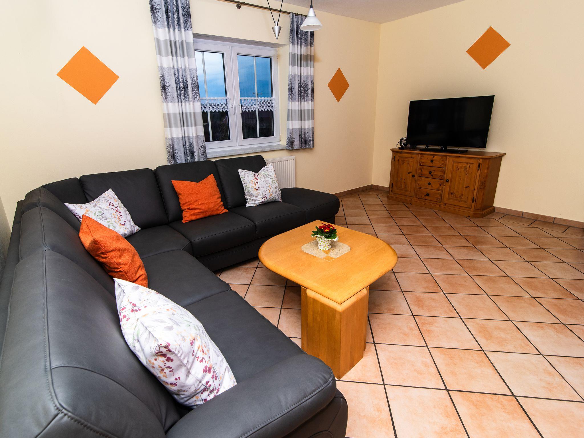 Eine wunderbare Zeit fernab vom Alltag verbringen Sie mit Ihrer Familie in unserer Ferienwohnung „Schwalbennest“: Auf den insgesamt 80 qm stehen Ihnen neben der geräumigen Wohndiele 2 Schlafzimmer mit je einem Doppelbett zur Verfügung, die wir nach Wunsch und Bedarf für Sie mit Baby- oder Kinderbett aufbetten. Unsere Ferienwohnung „Schwalbennest“ im EG ist allergiegerecht und entsprechend der Family-Villages-Qualitätskriterien kindergerecht ausgestattet. In der geräumigen Wohndiele steht ein Essbereich mit Sitzgarnitur sowie eine umfänglich ausgestattete Küchenzeile für Sie bereit. Die Küche ist mit Backofen, Mikrowelle, Kühlschrank mit Gefrierfach und Kaffeemaschine, sowie Wasserkocher und Toaster ausgestattet. Damit Sie mit leichtem Gepäck reisen und sich sofort wie zu Hause fühlen, sind unsere Ferienwohnungen mit Handtüchern, Seife zum Händewaschen, Spülmittel und Geschirrspültabs ausgerüstet. Zudem ist eine Waschmaschine zur Mitbenutzung gegen eine Gebühr vorhanden.
