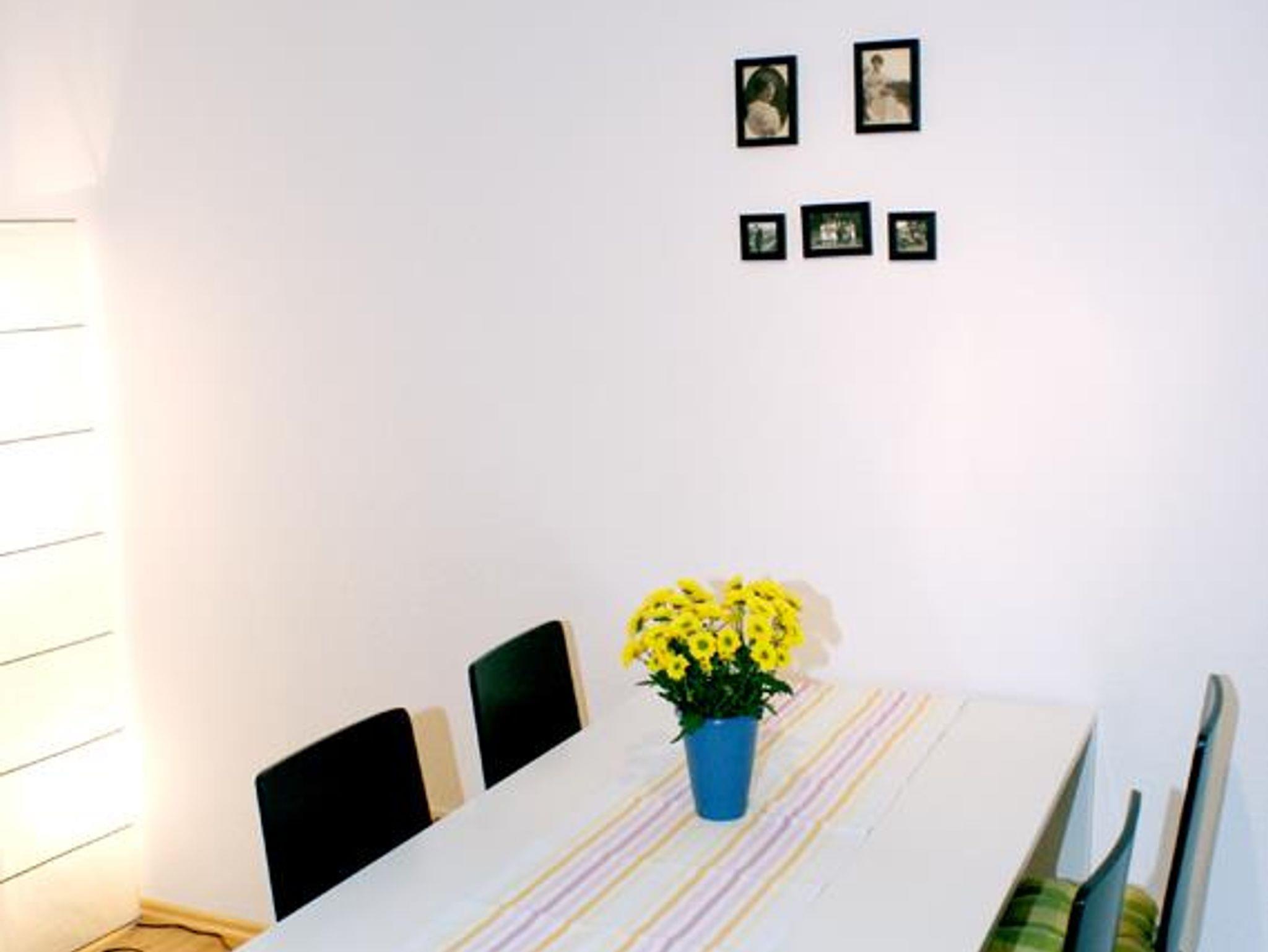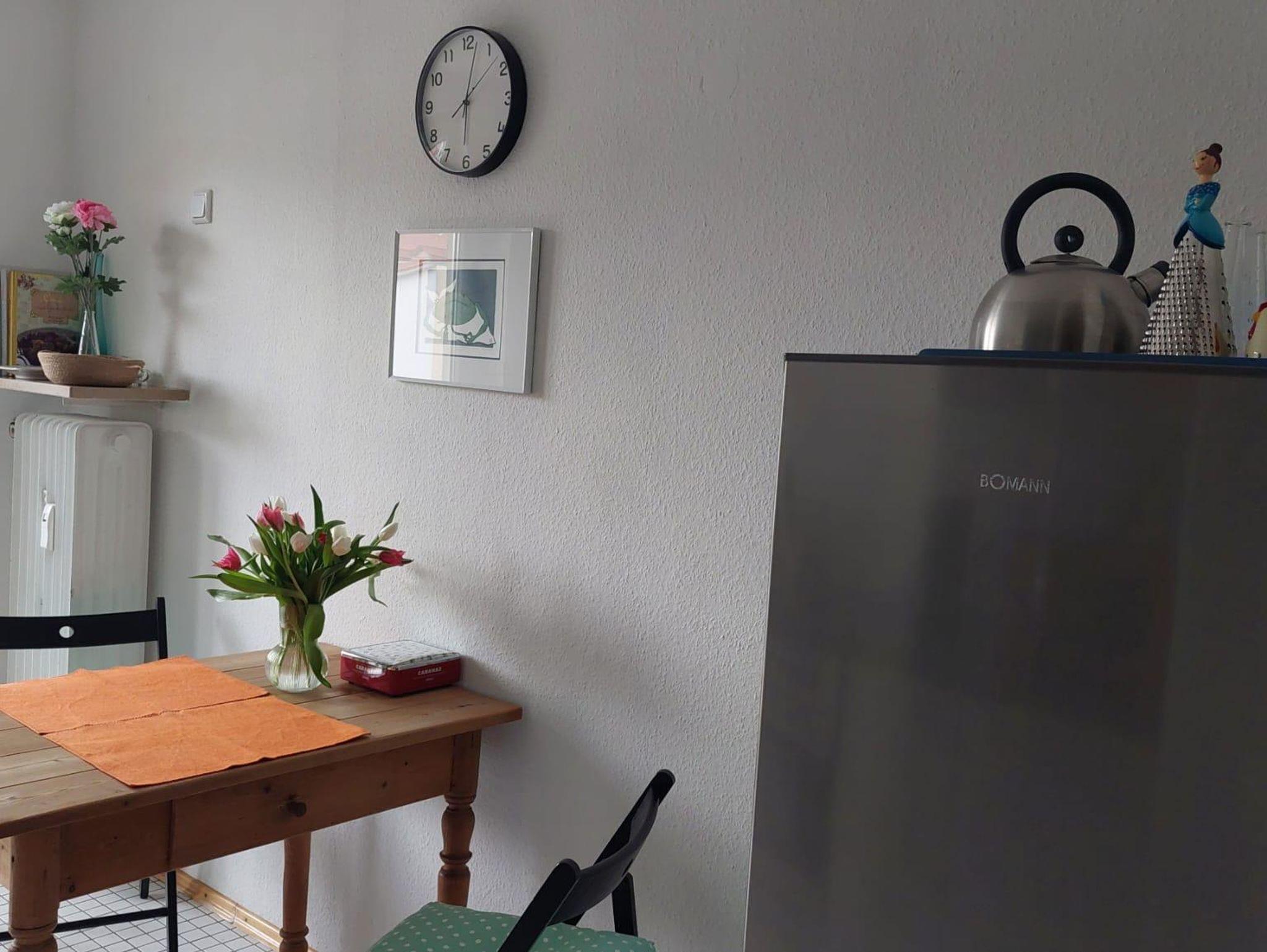 Die Wohnung hat eine modern ausgestattete Küche mit Ceran-Kochfeld, Backofen, Mikrowelle, Spülmaschine, Kühl-Gefrier-Kombination, Wasserkocher und Kaffeeemaschine, auch Kaffeefilter, Gewürze, Essig/Öl und Salz/Pfeffer sind vorhanden. Selbstverständlich sind Gegenstände für den täglichen Gebrauch in der Ausstattung enthalten wie z.B. Handtücher, Bettwäsche, Seife, Toilettenpapier, Küchenrolle, etc.. Das Wohnzimmer ist mit einem TV-Gerät und (integriertem) DVD-Player ausgestattet. Im Badezimmer finden sich eine Waschmaschine und ein Fön. Die Wohnung kann durch eine Schlafcouch von 4 Personen genutzt werden. Auf Wunsch wird ein Kinder-Hochstuhl, Wickeltisch oder Babywanne bereitgestellt. Ein Kinderbett ist gegen Aufpreis möglich.