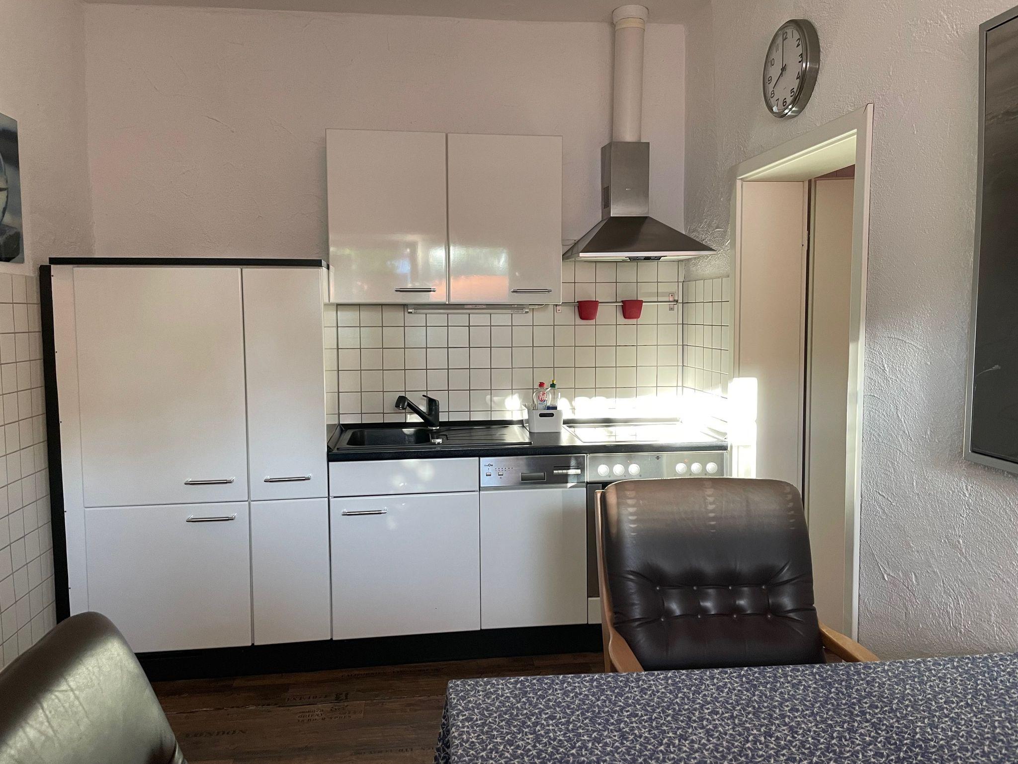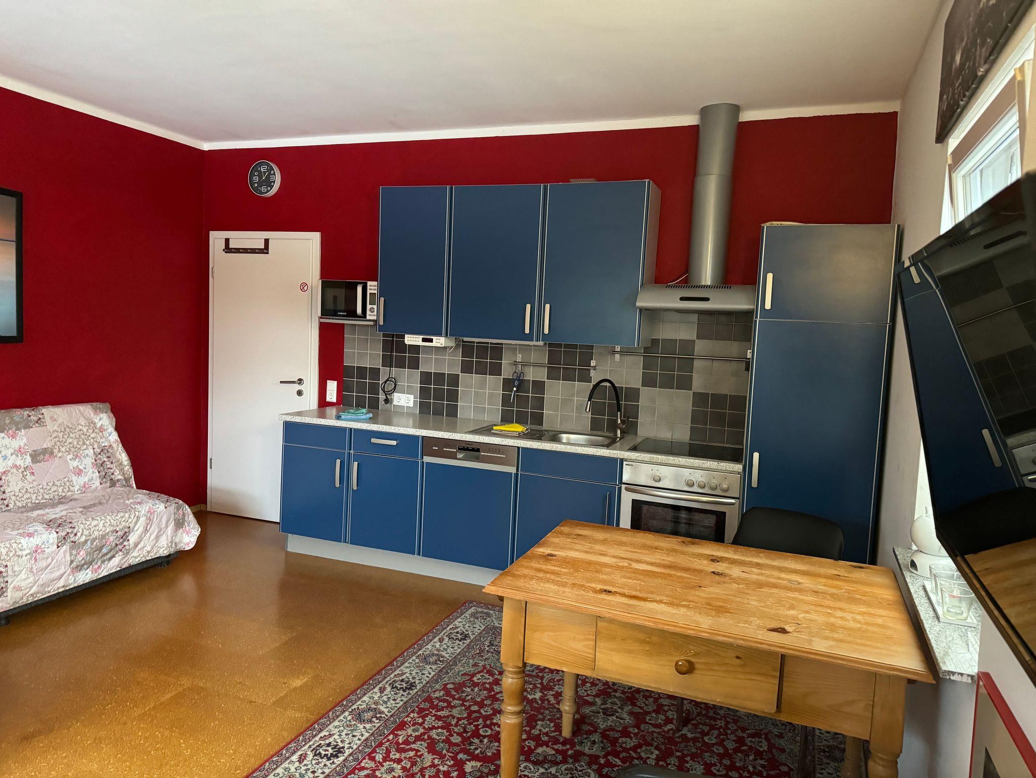 1 komplett eingerichtete Küche mit Spülmaschine, Herd, großer Kühlschrank mit 3 Gefrierschubladen