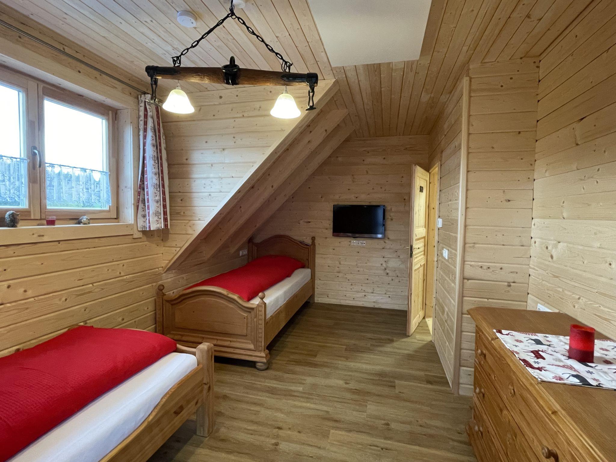 "Chalet Sven", 4-room chalet 120 m2 on 2 levels. Comfortable and wooden furniture furnishings: living/dining room with Scandinavian wood stove and satellite TV (flat screen). Exit to the balcony. 1 room with 1 double bed. Open kitchen (oven, dishwasher, 4 ceramic glass hob hotplates, toaster, kettle, microwave, electric coffee machine). Shower/WC. Upper floor: 1 room with 1 double bed. 1 room with 2 beds. Bath/WC, hydro massage bath, Sauna. Electric heating. Balcony, large terrace. Terrace furniture, balcony furniture. Beautiful view. Facilities: washing machine, dryer, baby cot. Internet (WiFi, free). Parking at 20 m. Please note: non-smoking house. Suitable for allergy sufferers, smoke alarm. Infrared heat panels. E-bike rental. Solarium.