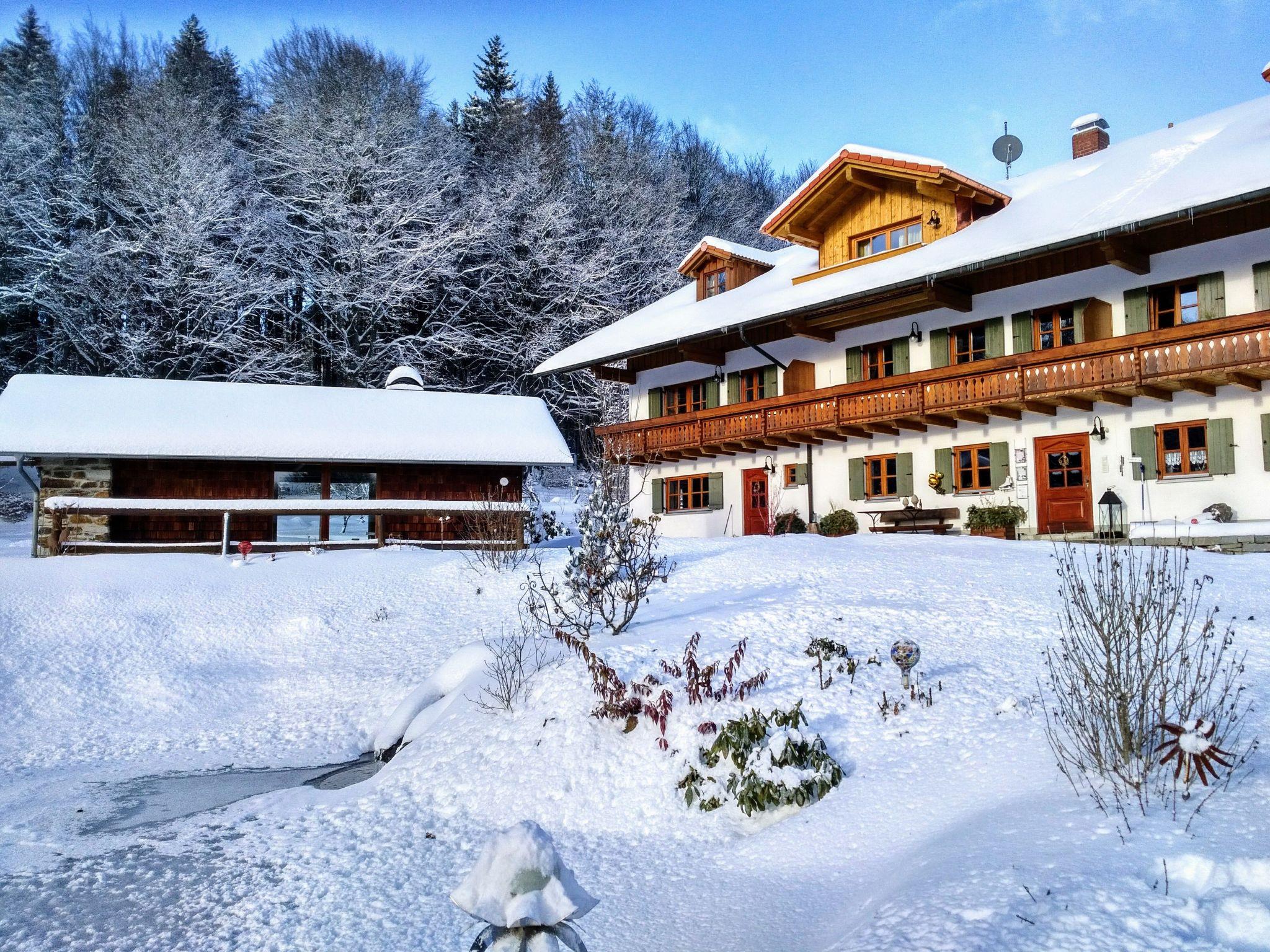 The house is located about 3km from Spiegelau, please note that wild animals are on the roads at dusk, please think of winter tyres from October to Easter. Roads are cleared in the morning and more often during the day in case of snowfall. There is a garden pond on the property, about 1.20 metres deep. Please take care of your children, we have our own spring water which is strictly controlled by the authorities. Please handle the water with care. The house has its own sewage treatment plant. Please only throw toilet paper in the toilet. There are horses in the neighbourhood. Please do not feed them. We are right next to the nature reserve. Please no New Year's Eve firecrackers. Dogs must be kept on a leash in the national park. bread service is possible. sauna use is organised. You have this for yourself. It is not shared with other guests. Please plan your visit to the sauna. You will receive 2 towels per person. The use of the sauna is 2 hours.