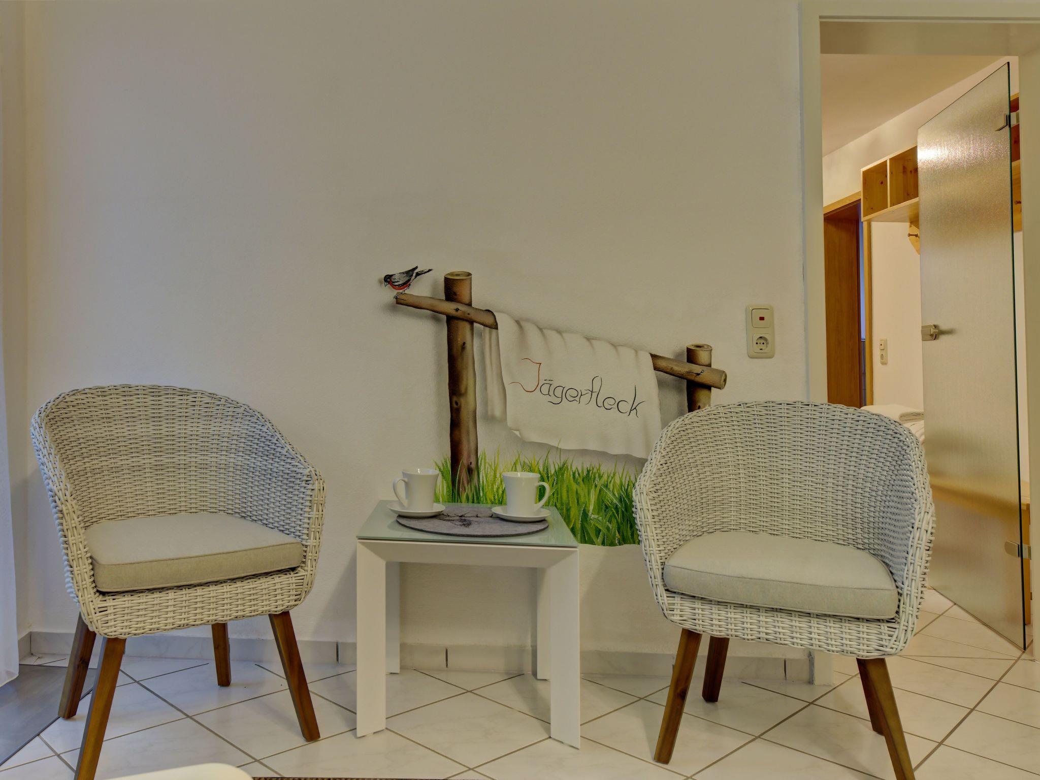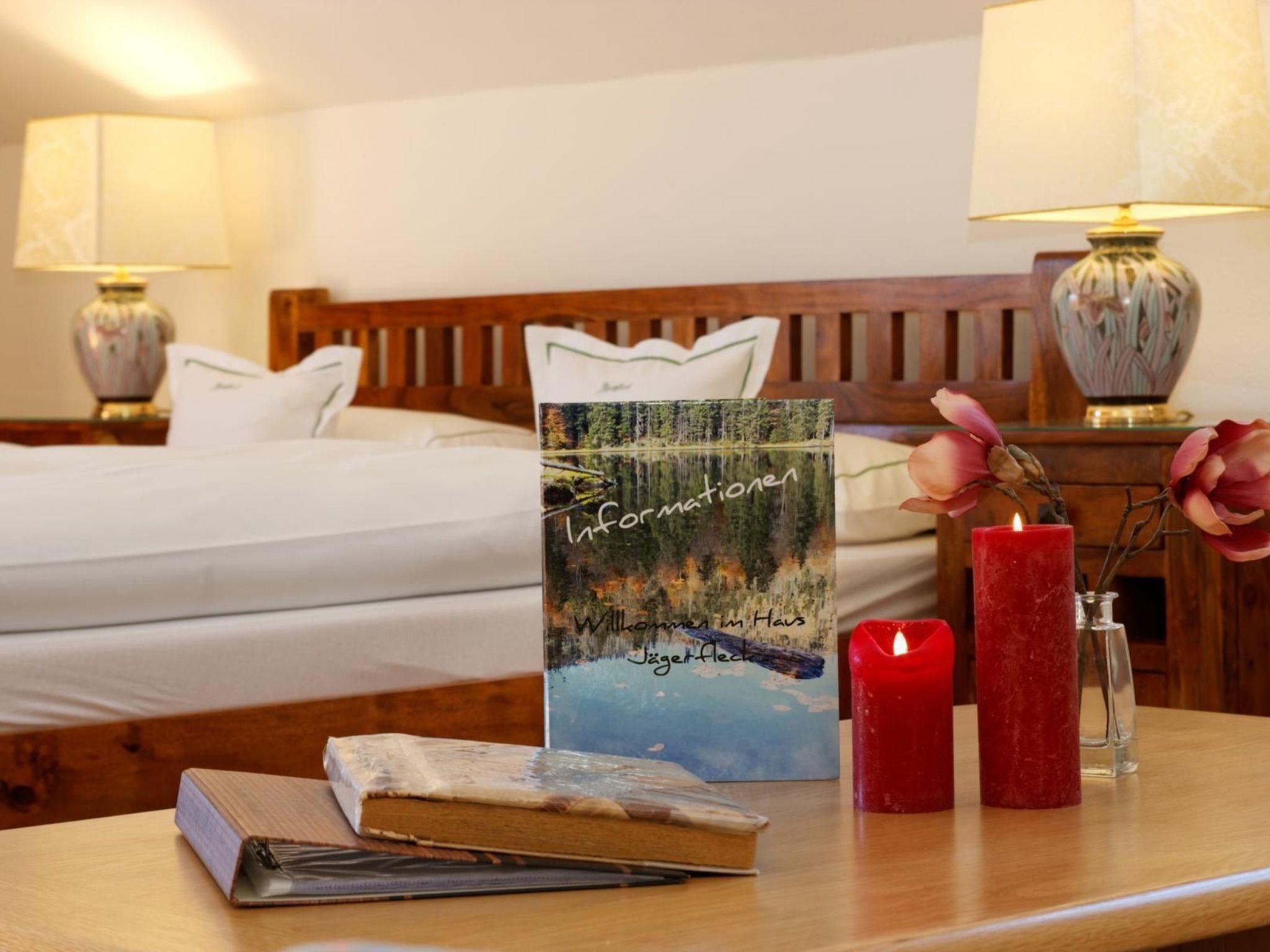 Haus Jägerfleck is situated on a large property in a quiet, idyllic location directly in the national park. Live in harmony with nature. There is a large forest playground in the immediate vicinity. The entrance to the cross-country ski trail and starting point for hikes is right next to the property. The holiday flats are very different and offer something special for every taste. But what they all have in common is cleanliness, modern and high-quality furnishings, where you will feel at home. In the entire living area, we have chosen the furnishings not only for their beauty, but above all for their health and biological aspects. Daylight bathrooms, wooden floors, tasteful wooden furniture and a fully equipped kitchen with dishwasher for your comfort. Use our party house with wood-burning stove for cosy evenings for up to 15 people.