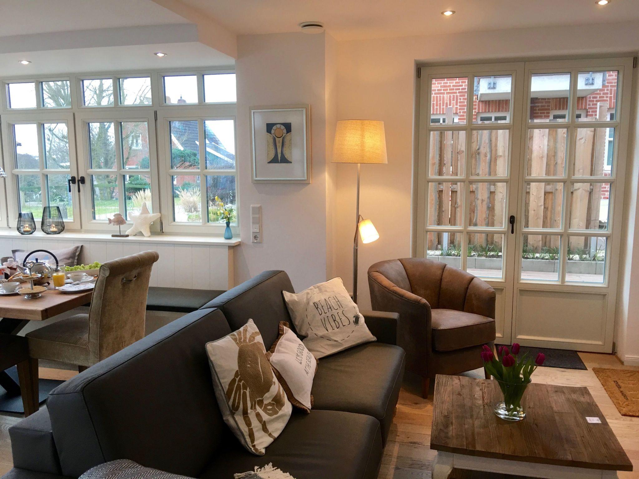 Our holiday home "MeerLeev" extends over 3 floors with a living space of 90 square metres for 4-6 people. It is exclusively furnished to a high standard and has a spacious living, dining and cooking area, 2 bedrooms, 2 shower rooms, 1 sauna, 1 sun shower/infrared light and underfloor heating and automatic ventilation on each floor. Outside there is also a beautiful wooden terrace with comfortable garden furniture and a small lawn-lounger area.