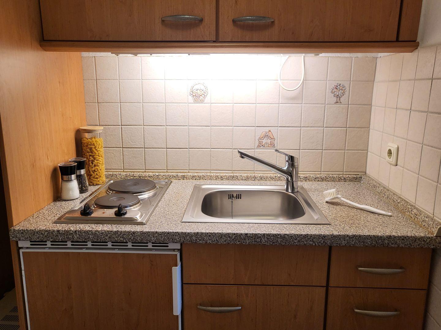 Zentrale 1 Zimmer-Wohnung, ca. 25 qm, mit Balkon, Schrankbetten, Kochnische sowie Duschbad mit WC.