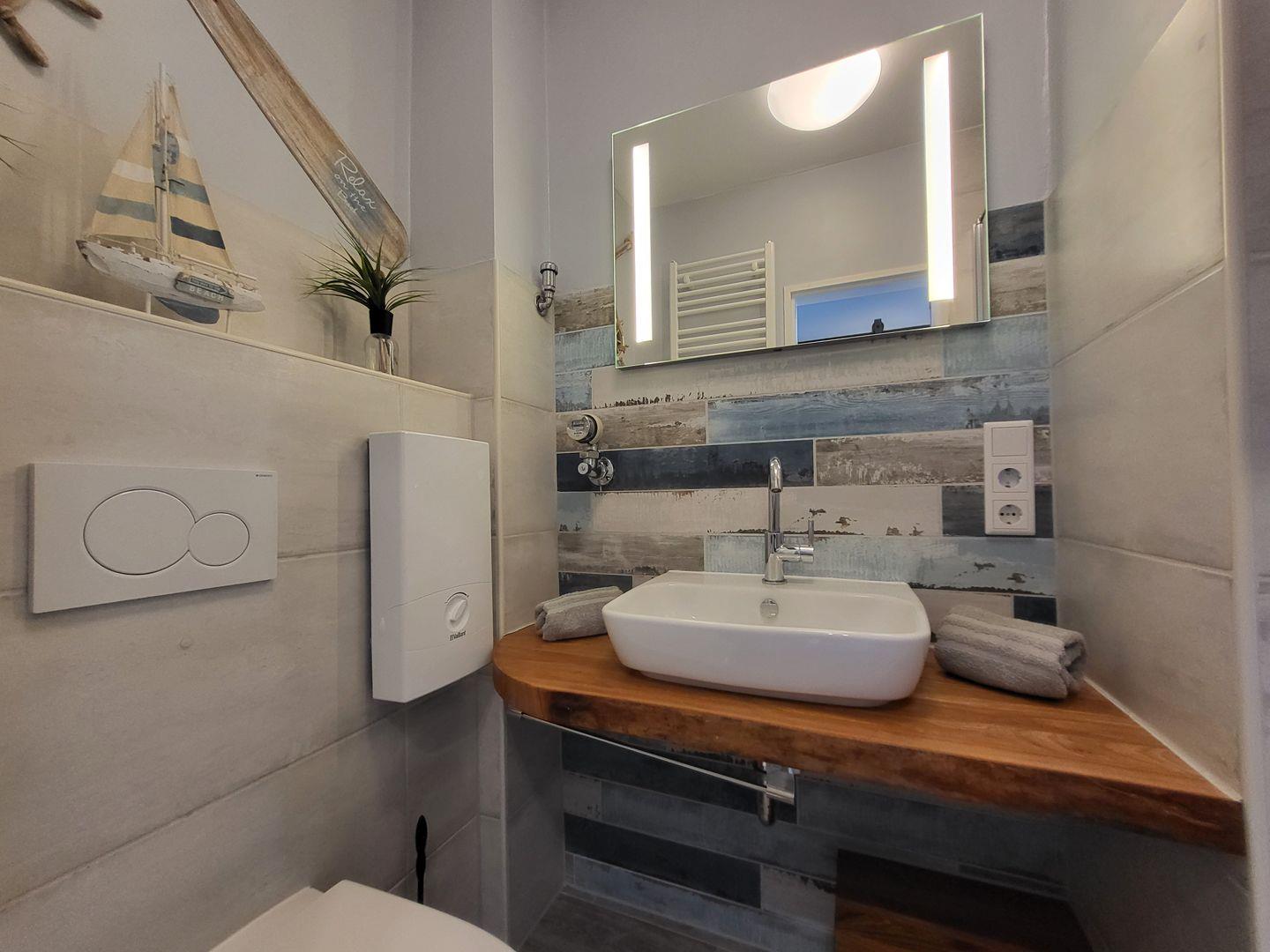 Zur Ferienwohnung gehört ein Duschbad mit WC.