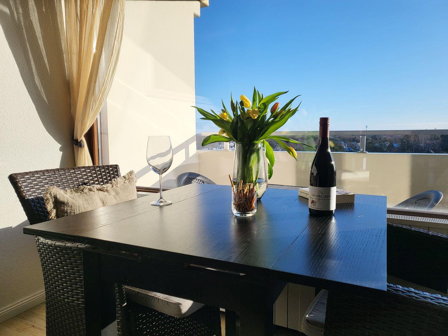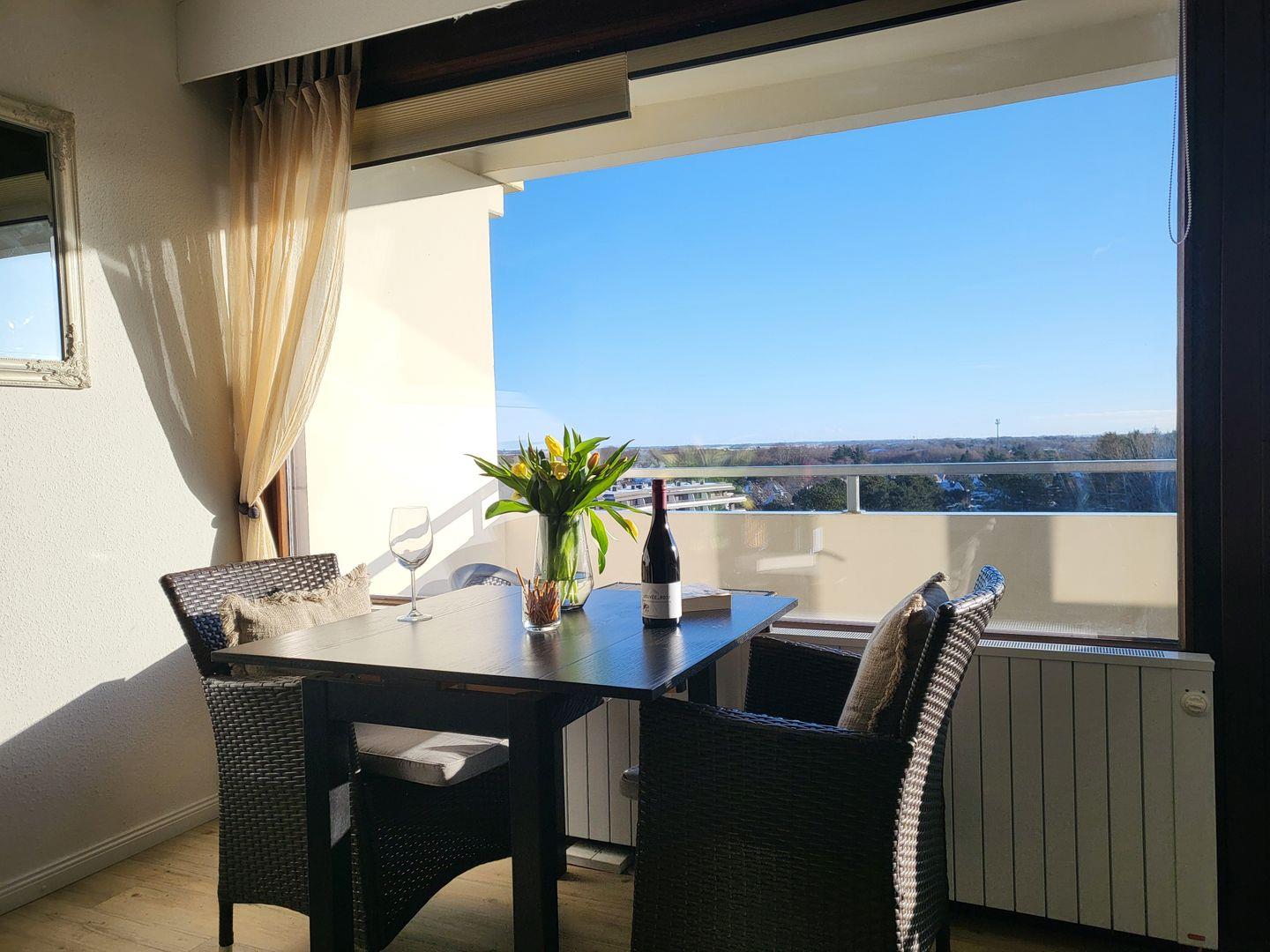 Moderne 3-Zimmer Ferienwohnung in 7. Etage mit Balkon und direktem Seeblick.