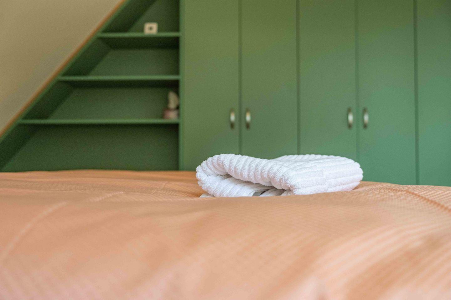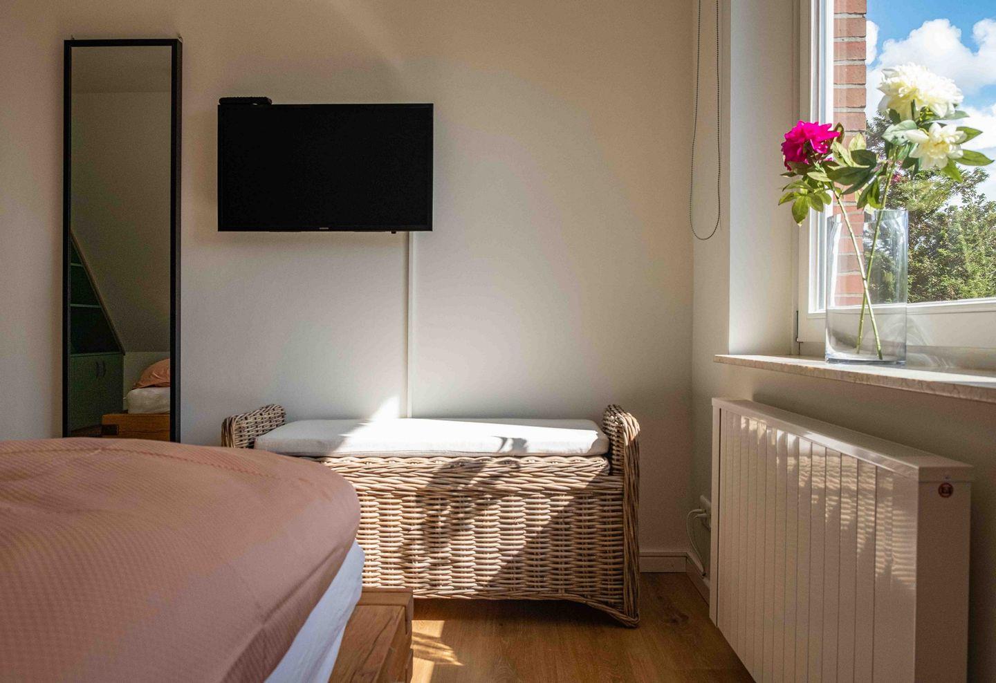 Im Obergeschoss stehen zwei Schlafzimmer bereit, eines ist mit großes 180x200cm Doppelbett und Flachbild-TV ausgestattet, das zweite mit einem Einzelbett und in beiden Zimmern sind Insektenschutzgitter vorhanden.