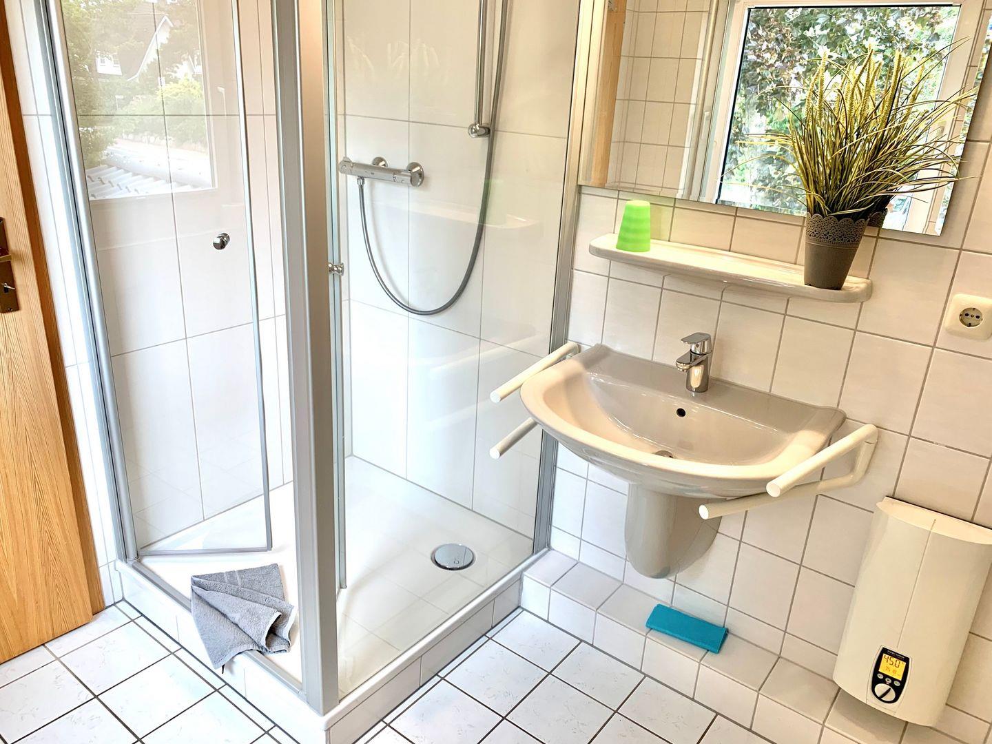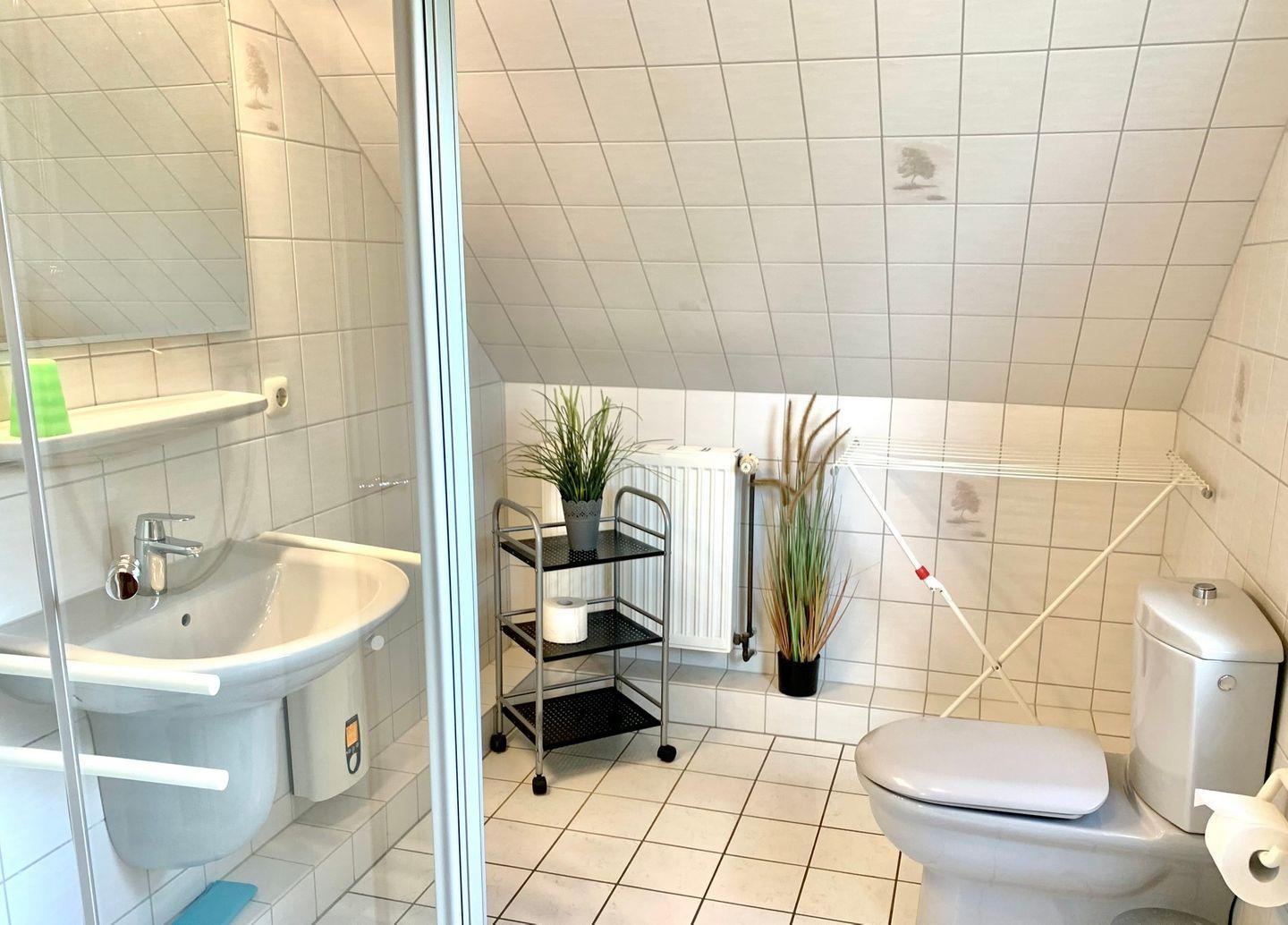 Zur Ferienwohnung gehört ein Duschbad mit WC.