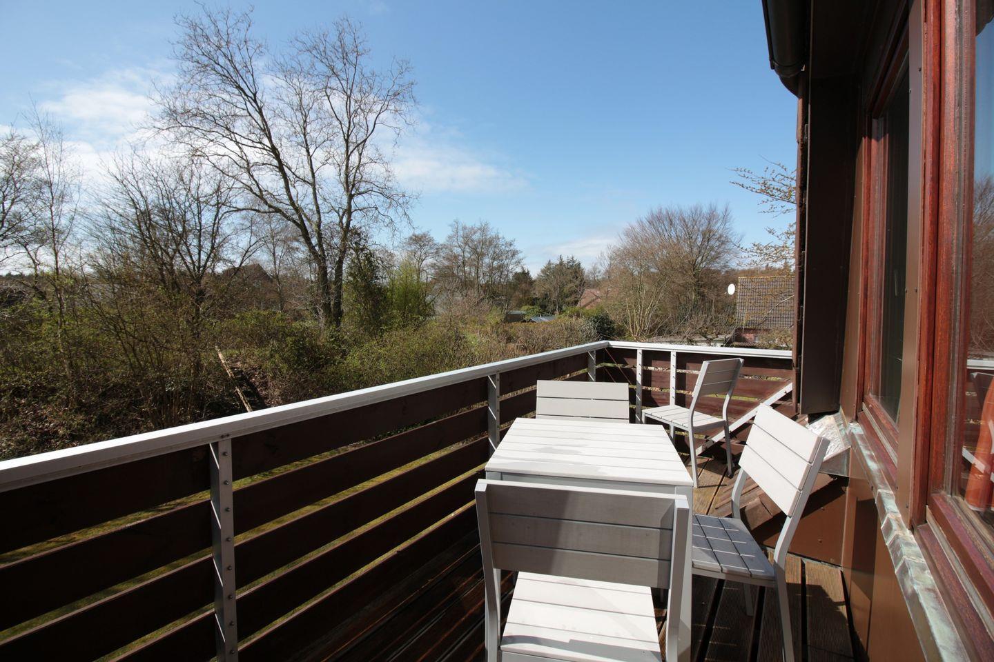 Die moderne, 45m² große 2-Zimmer Ferienwohnung liegt im Obergeschoss und verwöhnt ihre Gäste mit großem, möbliertem Balkon.