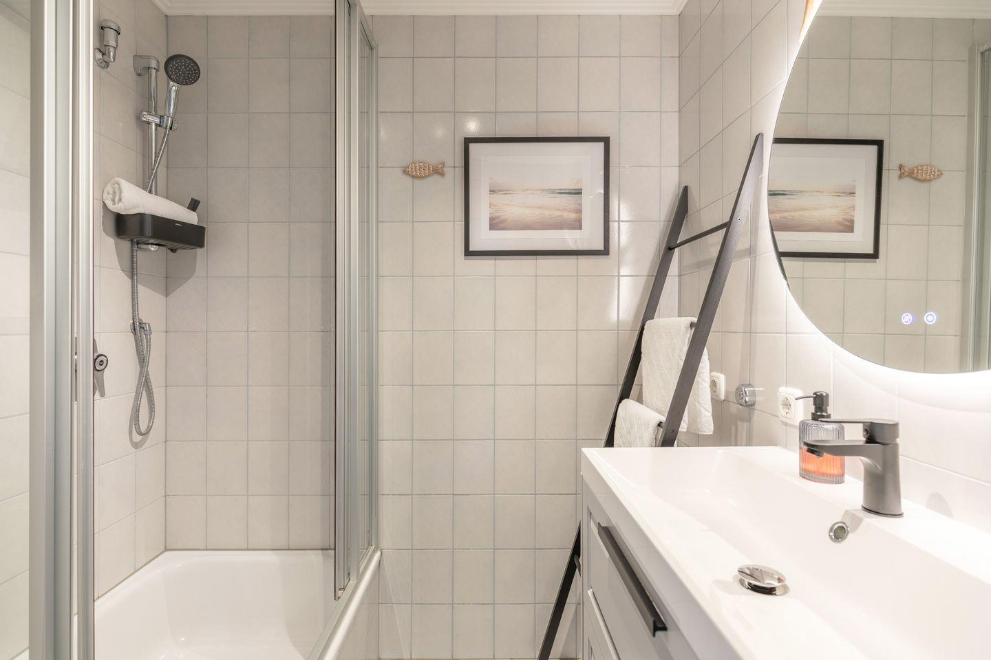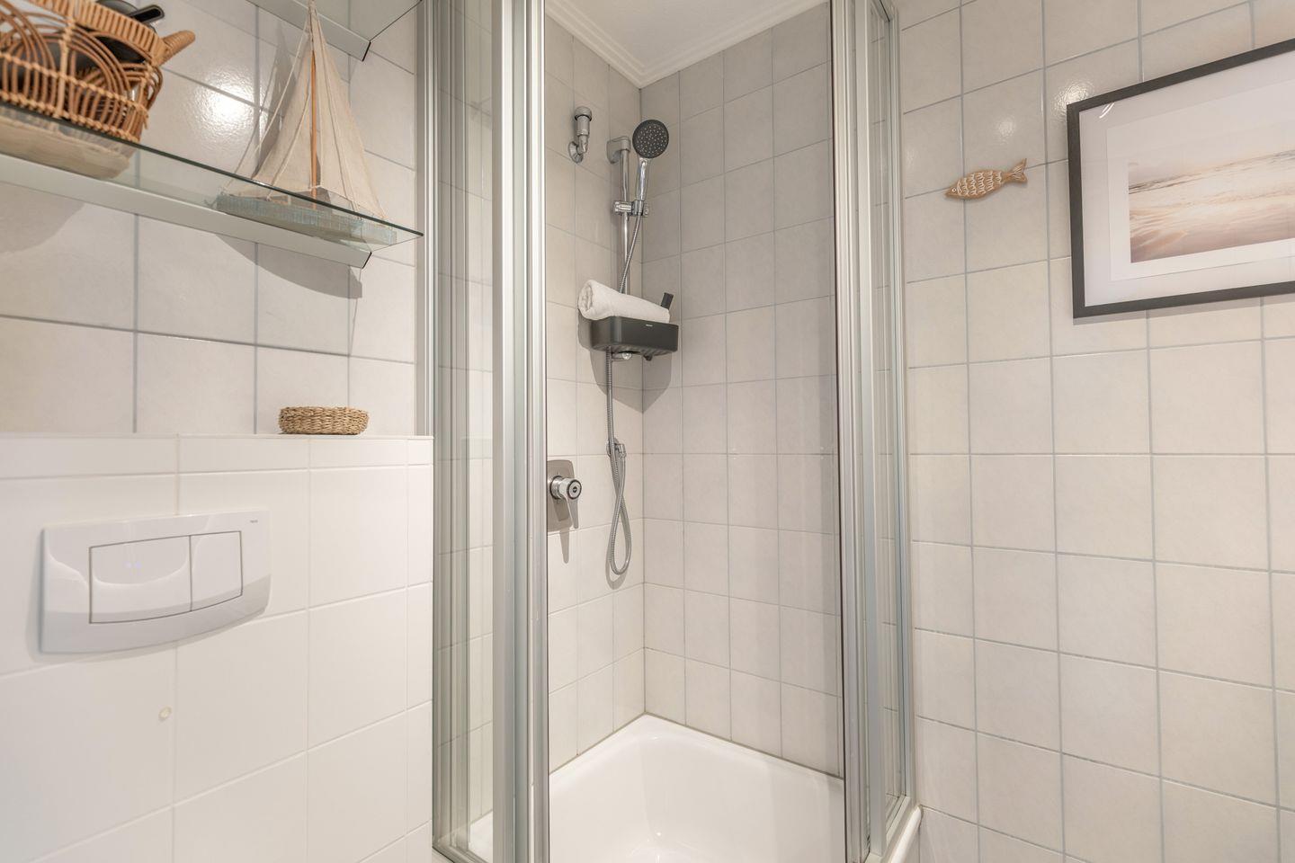 Das innenliegende Duschbad, das vom Flur zu erreichen ist, ist mit einer Dusche (hohe Duschwanne) und WC ausgestattet.