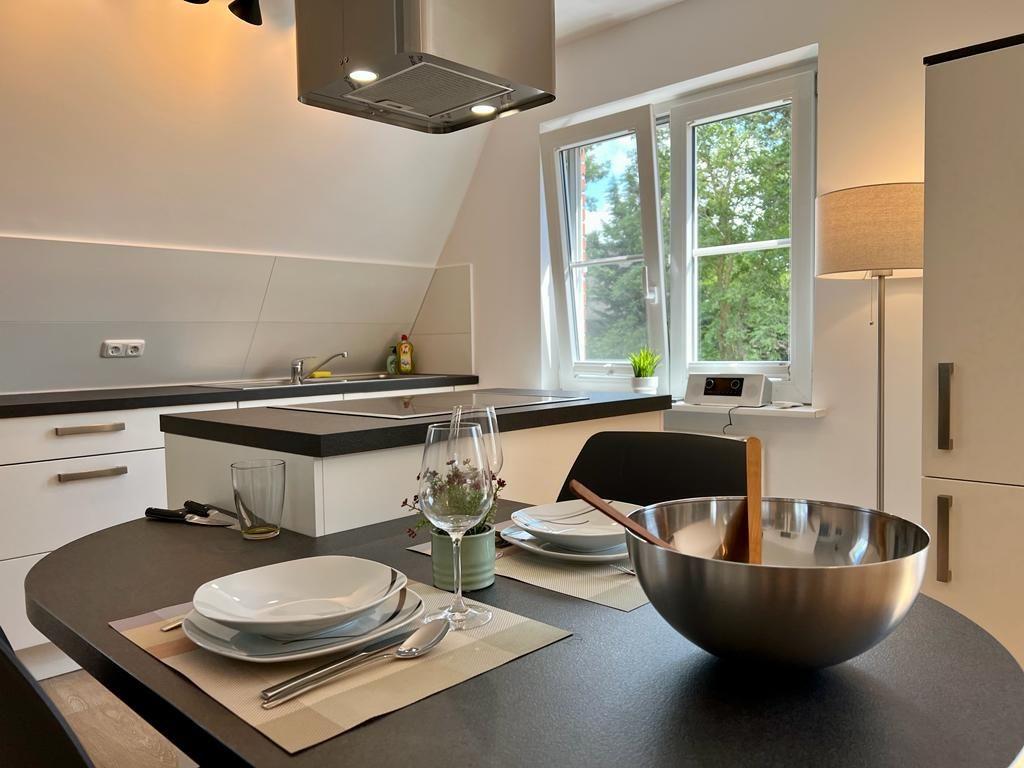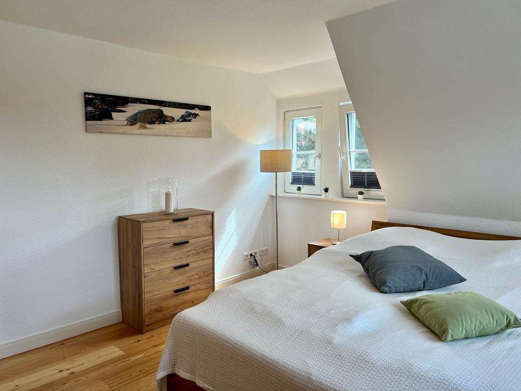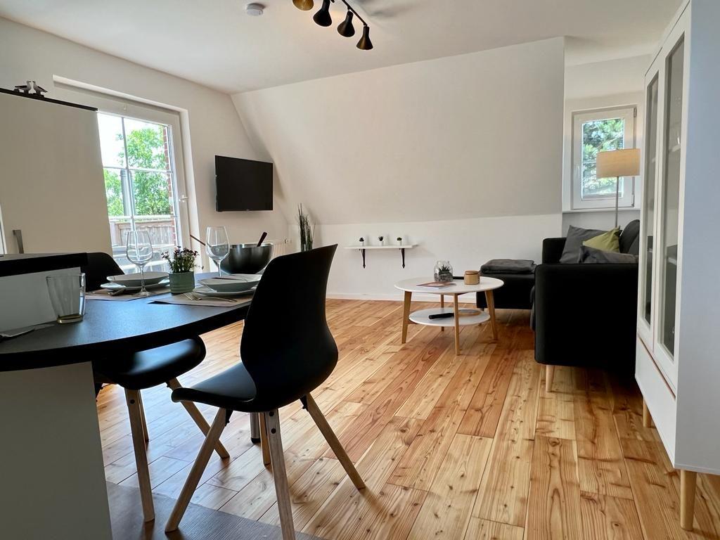 Die Wohnung im Obergeschoss bietet ca. 40 qm und ist gut ausgestattet, inklusive WLAN. Der helle Wohnbereich mit Essecke lädt zum geselligen Beisammensein ein. Die Küche lässt keine Wünsche offen. Das Schlafzimmer bietet Nordseeträume und ein Badezimmer mit Dusche steht zur Verfügung.