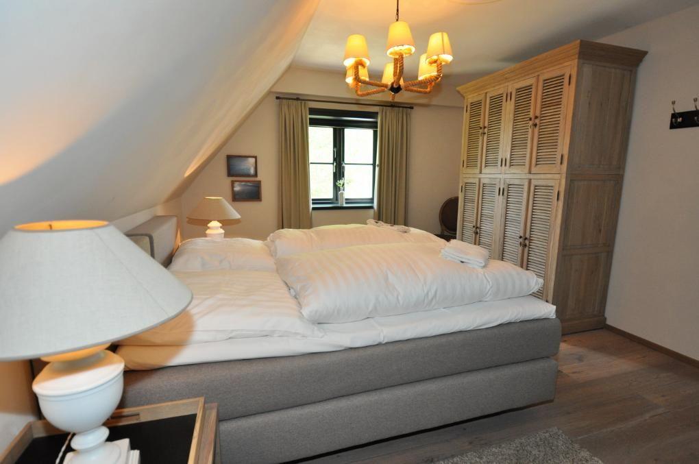 Vom Wohnraum führt eine Treppe zur Galerie, auf der eine bequeme Chaiselounge zum gemütlichen Verweilen einlädt. Die Terrasse in Westausrichtung verfügt über einen kleinen Gartenanteil und ist mit einem Strandkorb ausgestattet.