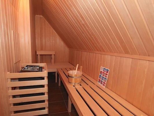 Dachgeschoss: eine Sauna mit separater Dusche und Ruhebereich