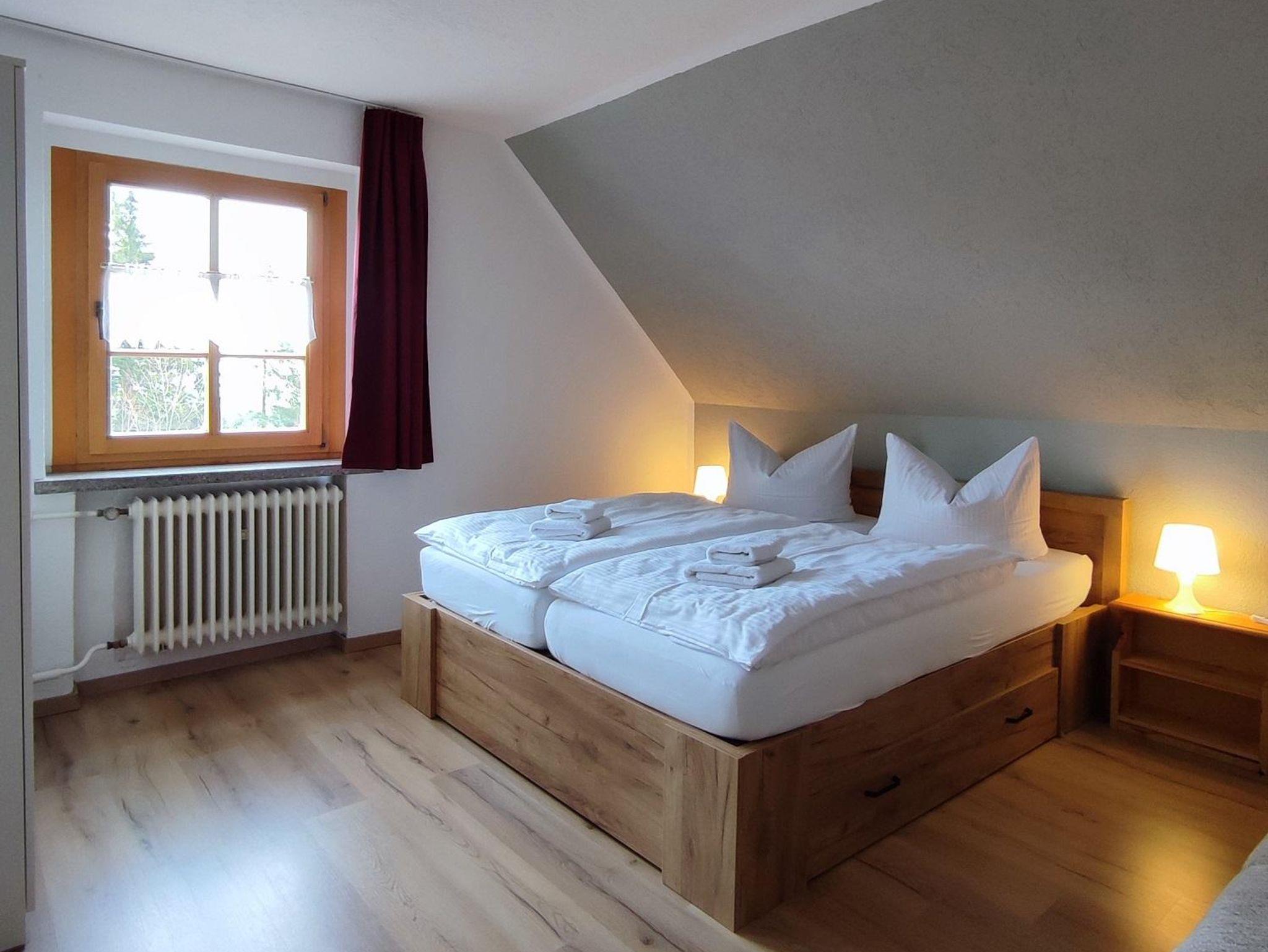 Unser großzügiges Drei-Raum-Apartment „Erna“ befindet sich im Dachgeschoss und bietet mit ca. 64 qm Platz für 2 bis 4 Personen. Es verfügt über ein Wohnzimmer mit ausziehbarem Schlafsofa, TV/WLAN und großem Esstisch. Die Küche mit Essecke, das Schlafzimmer mit Doppelbett und das moderne Badezimmer mit Dusche bieten Komfort. Der schmale Balkon nach Osten verspricht einen besonderen Ausblick. Bitte beachten Sie, dass im Dachgeschoss keine Haustiere erlaubt sind.