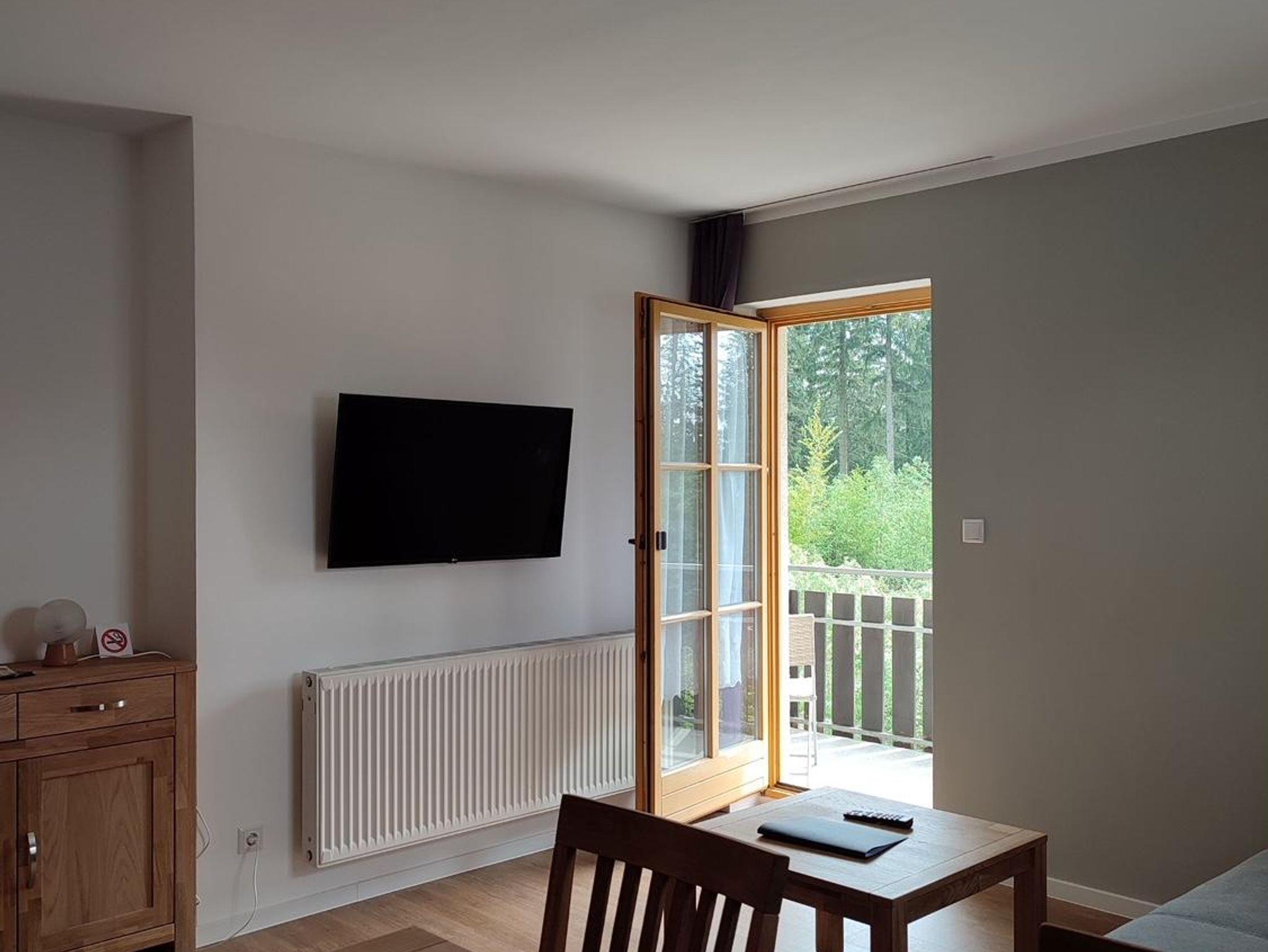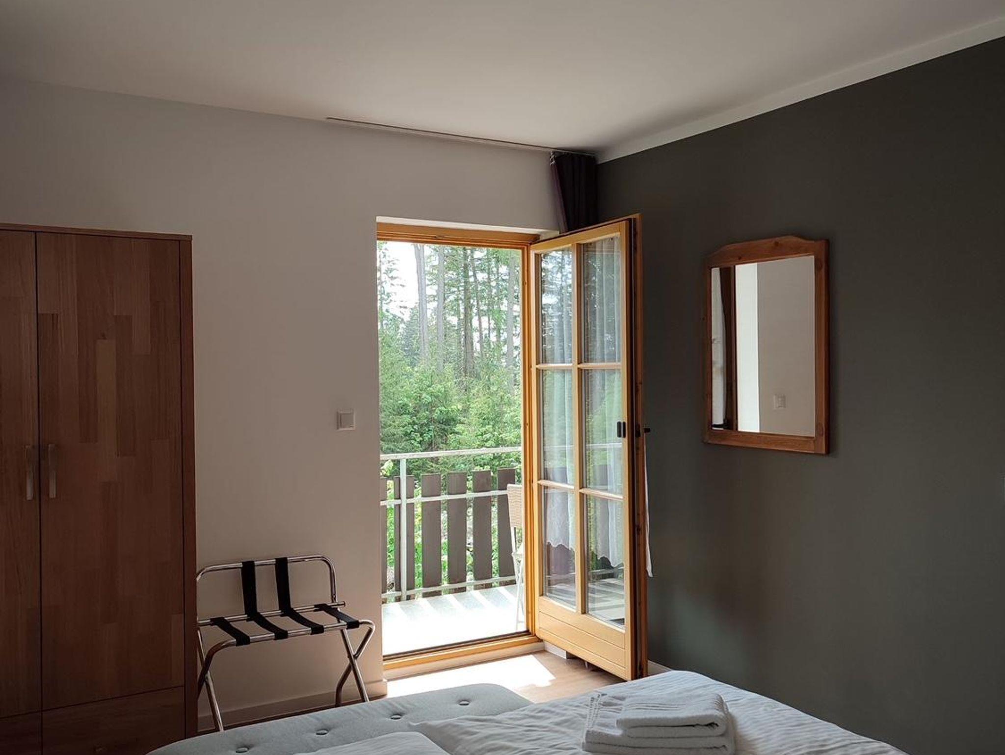 Betreten Sie Clara, ein einladendes Zwei-Raum-Apartment im Obergeschoss. Auf ca. 43 qm finden 2 bis 4 Personen Platz. Der großzügige Balkon nach Südwest - mit Zugang vom Schlafzimmer und Wohnzimmer - verspricht entspannte Stunden. Genießen Sie das geschmackvoll eingerichtete Wohnzimmer mit ausziehbarem Schlafsofa, TV/WLAN und großem Esstisch. Die moderne Küchenzeile, das Schlafzimmer mit Doppelbett und das stilvolle Badezimmer mit Dusche sorgen für Komfort. Haustiere sind herzlich willkommen.