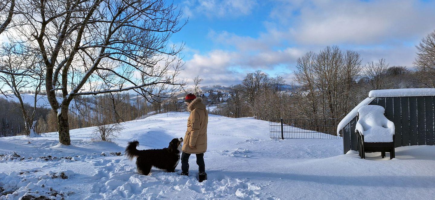 Der offene Wohnbereich ist das Herz des Hauses. Eine gemütliche Couch, rustikale Holzelemente und ein Holzofenkamin sorgen für eine behagliche Atmosphäre, die zum Entspannen einlädt. Große Fenster lassen viel Tageslicht herein und bieten einen malerischen Blick auf die umliegende Natur. Zur Unterhaltung stehen dir ein Flachbild-TV und eine Musikanlage bereit.