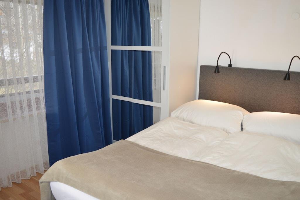 , , , , Køkken(kakkelovn, komfur, opvaskemaskine , køleskab), Stue/soveværelse(, , , Fjernsyn, varme), soveværelse(, , enkeltseng, dobbeltseng, varme), badeværelse(, toilet, bruser, håndvask, varme), Internetadgang, tørretumbler, vaskemaskine, balkon(balkon), parkering, strygebræt, strygejern, tørreskab