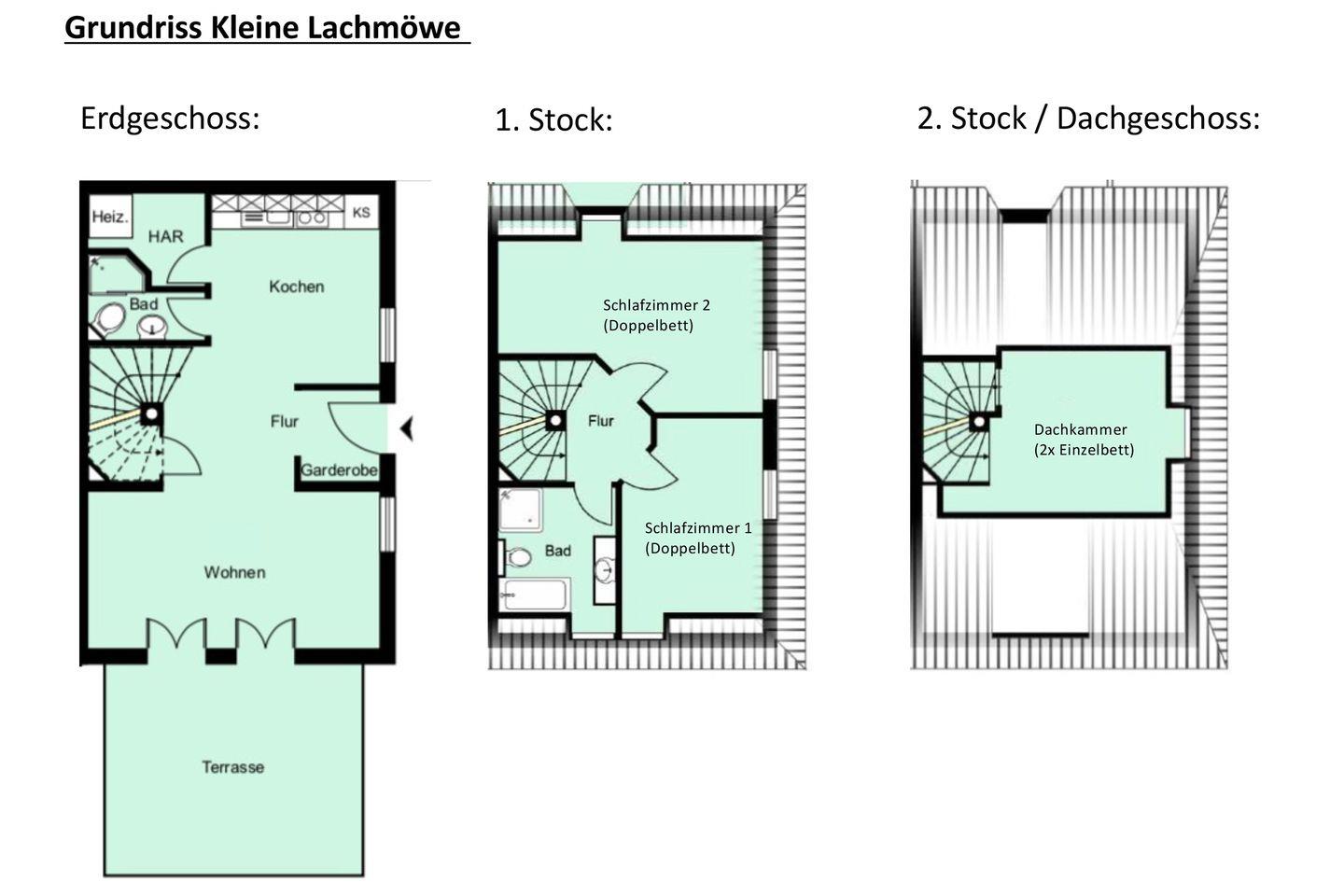 Sollten Sie mit mehr als 4 Personen verreisen wollen, können Sie die angrenzende Doppelhaushälfte "Große Lachmöwe" (Verfügbarkeit vorausgesetzt) für bis zu 6 Personen gerne dazu buchen (allerdings ohne Hund). In diesem Fall wird der Zugang aus der "Kleinen Lachmöwe" auf die Dachterrasse des Hauses geöffnet und so beide DHH über die gemeinschaftlich nutzbare Dachterrasse miteinander verbunden.