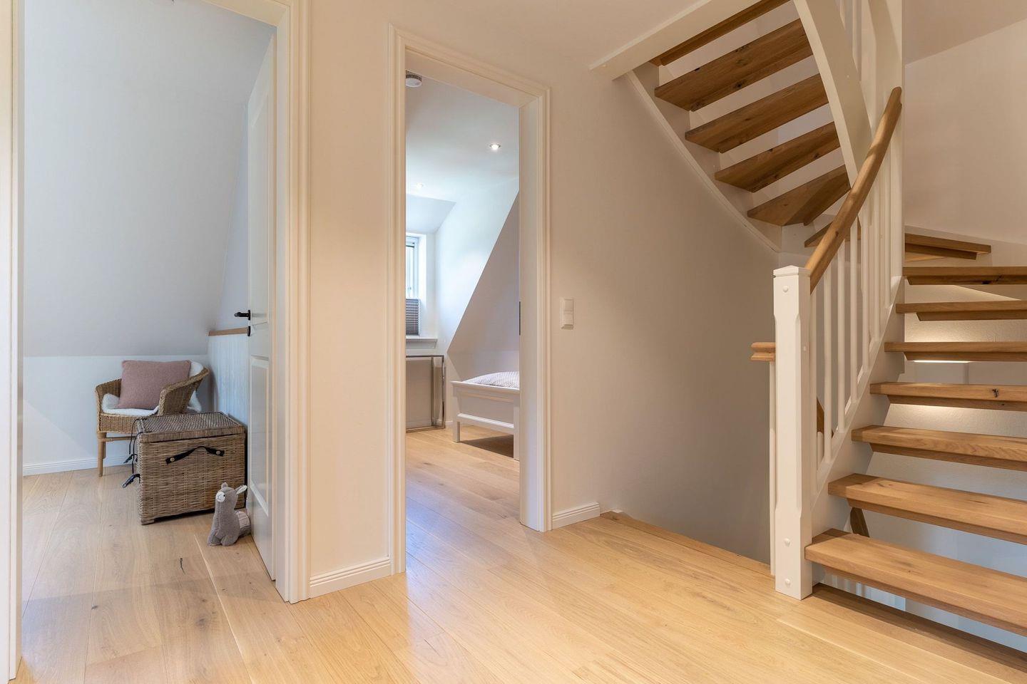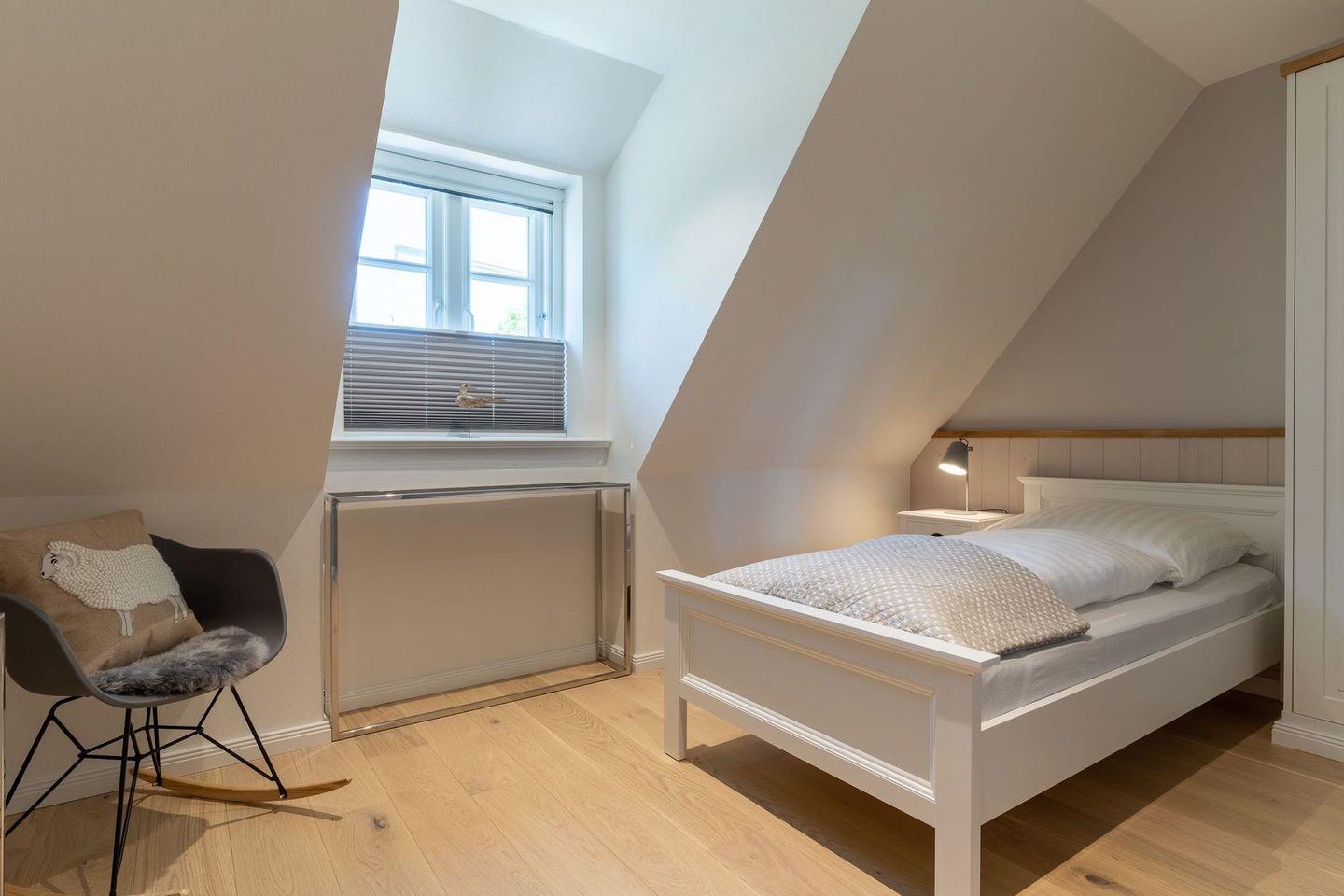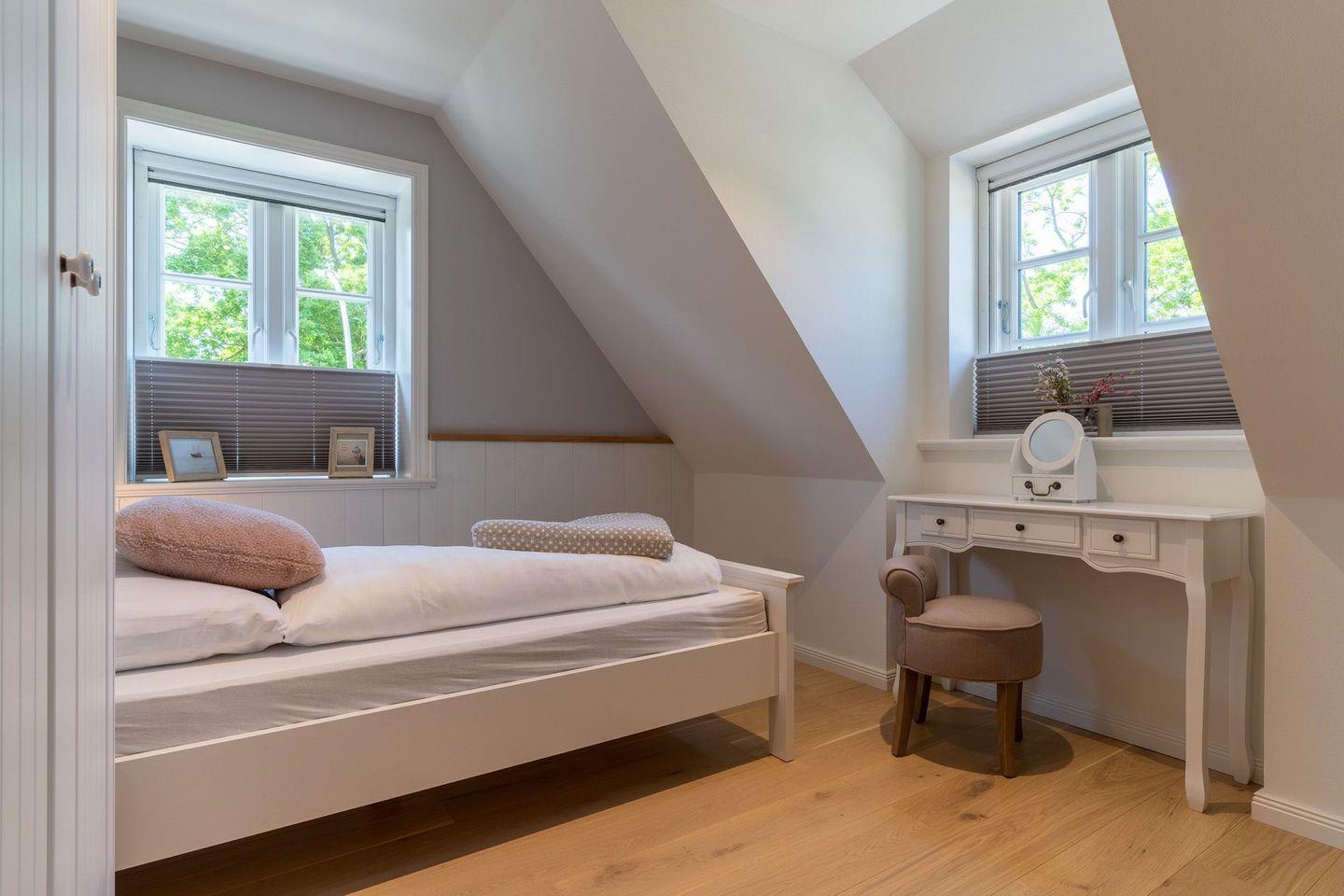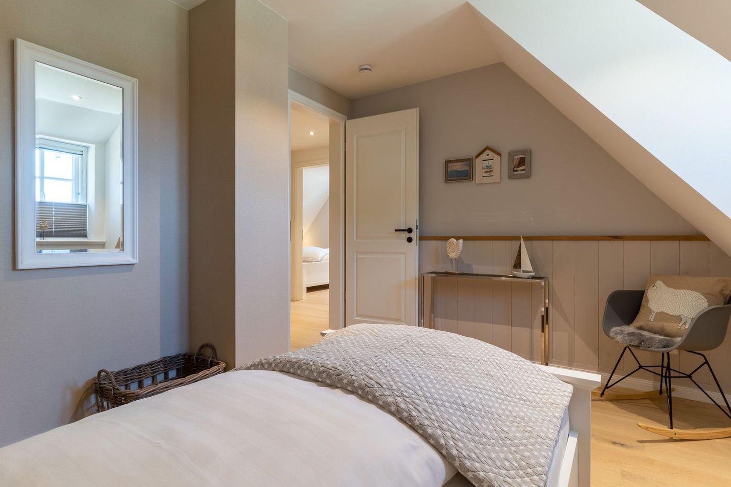 Darüber hinaus befinden sich im Obergeschoss zwei weitere Schlafzimmer mit je einem Einzelbett.