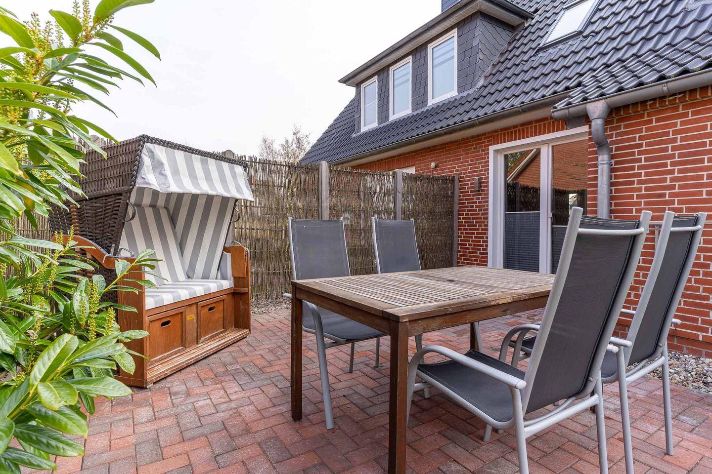 Die Terrasse bietet Platz für gemütliche Abende und gemeinsame Mahlzeiten im Freien. Hier können Sie die Sonne genießen oder den Tag mit einem Glas Wein ausklingen lassen.