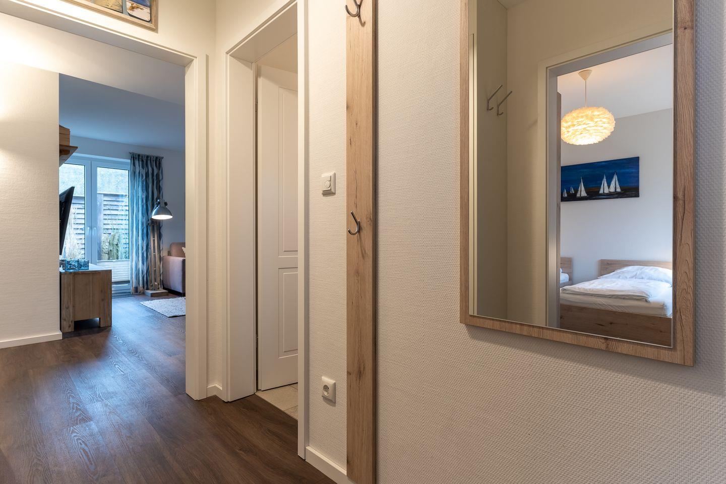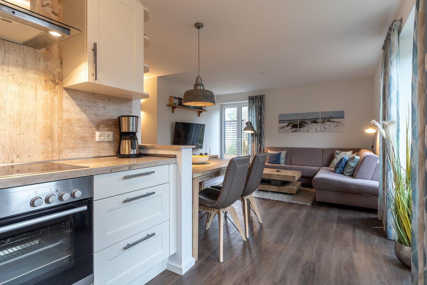 Das gemütlich eingerichtete Appartement verfügt über ca. 75 m² Wohnfläche und bietet großzügigen Platz für 4 Personen. Eine einzigartige Lage direkt im Dorf mit Wohlfühlambiente.... das bietet das Glücksmomente in SPO. Der lichtdurchflutete Wohnraum mit TV, Sofalonge und einem gemütlichen Essbereich bietet jeden Komfort. Eine gemütliche Terrasse lädt zum Sonnen ein. Die Küche, mit hochwertigen Geräten, grenzt direkt am Wohnzimmer an. Das Duschbad ist großzügig gestaltet und bietet genügend Platz für Ihre Utensilien, außerdem gibt es noch ein separates Gäste WC. Ein Schlafzimmer mit einem 180er Doppelbett und eines mit 2 Einzelbetten sorgen für ruhevolle Erholung. Beide Schlafzimmer bieten Ihnen zusätzlich einen TV.