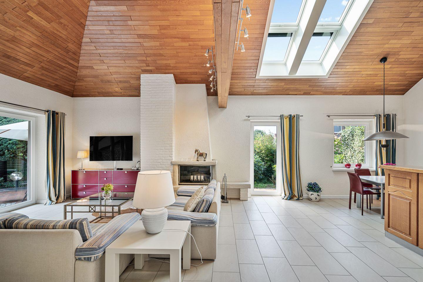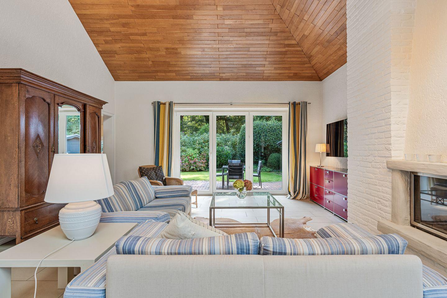 Vom Wohnzimmer gelangen Sie auf die Terrassen mit Blick in den wunderschön eingewachsenen Garten.