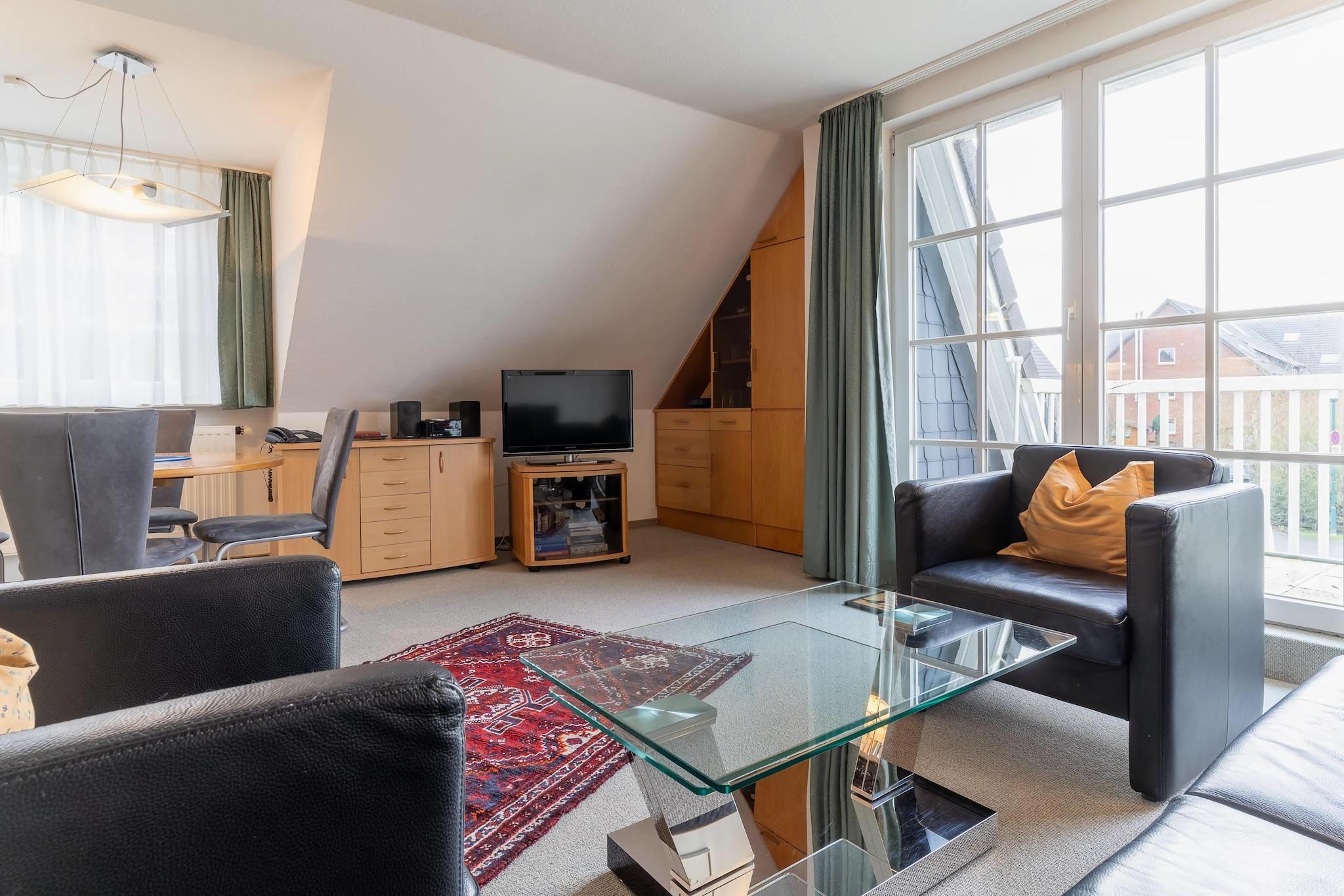 I stuen kan I slappe af i det hyggelige opholdsområde med fladskærm og radio. Det fuldt udstyrede køkken integreret i stuen tilbyder en behagelig mulighed for selvforplejning. Det moderne badeværelse er udstyret med bruser og toilet. En altan med havemøbler, som kan tilgås fra stuen, inviterer dig til at slappe af i den friske havluft. Der er 2 soveværelser til rådighed, et på øverste etage og et på loftet med udsigt over Ordinger-diget. De eksisterende fluenet har pollenbeskyttelse. Til lejligheden hører desuden et depotrum og en parkeringsplads. Højdepunkter inkluderet: Alle forbrugsbaserede energiomkostninger, sengelinned, håndklæder og slutrengøring WiFi Strandstol på terrassen Parkeringsplads