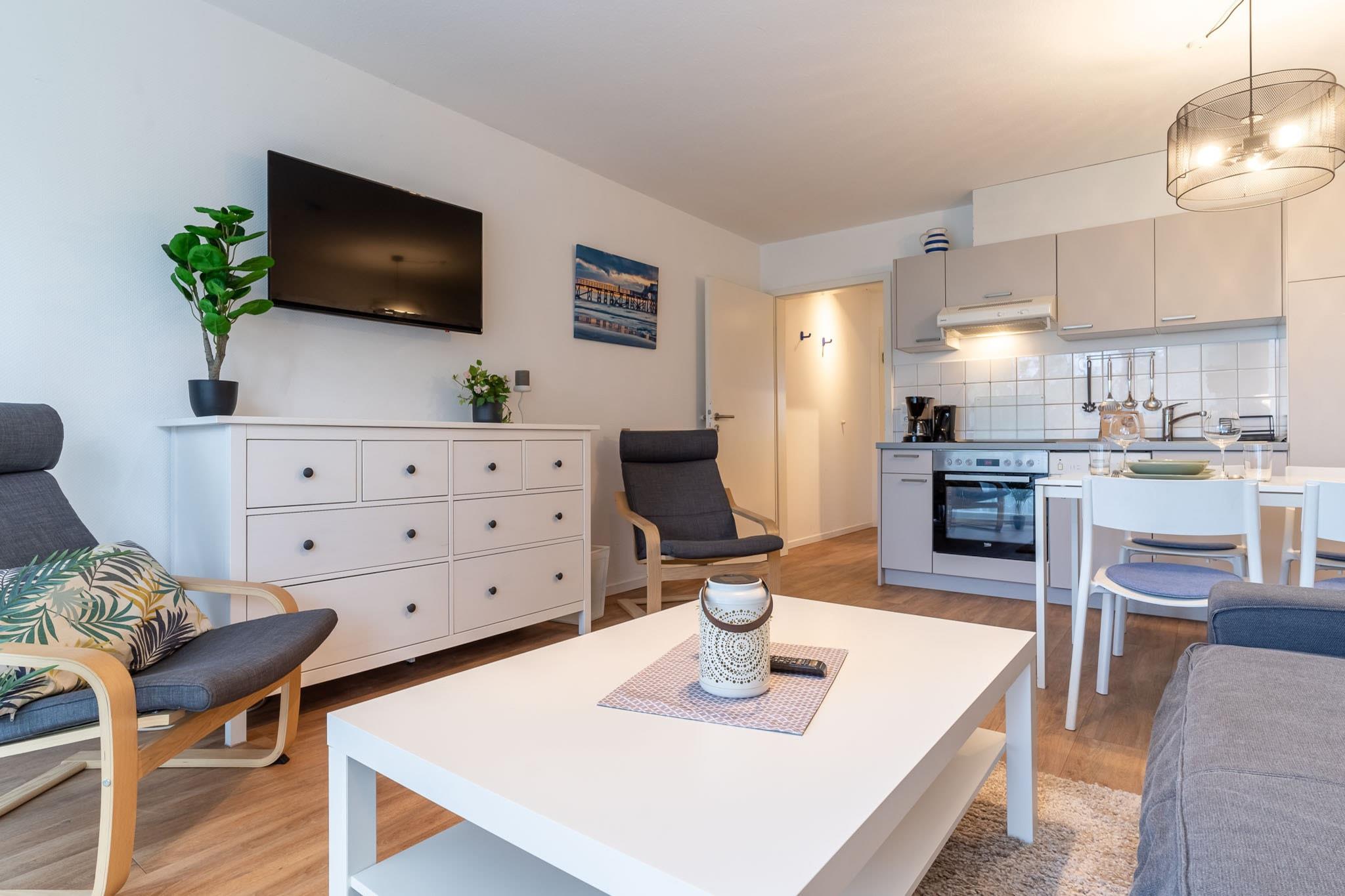 Lys og venligt indrettet ferielejlighed i attraktivt lejlighedshus ved indgangen til St. Peter-Ording i den populære bydel Ording. Fire distrikter er linet op langs den mere end 12 km lange og op til 2 km brede strand: Bad, Böhl, Dorf og Ording, hver med sit særpræg. Ording er strand- og vandsportsentusiasters Mekka, og stranden er både en legeplads og en sandkasse. Og du bor kun tusind meter væk fra al denne travlhed Aktiviteter i nærheden: 12 km lang og 2 km bred fin sandstrand kombineret med duften af fyrretræer og strandenge: det er St. Peter-Ording! Oplev Tysklands eneste badeby med sin egen svovlkilde. Det aflange feriested består af fire distrikter, hvoraf det smukkeste er den gamle St. Peter-landsby. Her inspirerer den gamle murstenskirke ved siden af mange stråtækte frisiske huse. Hver bydel har sin egen badestrand med restaurant på pæle. Vestkystparken byder på variation for hele familien med en børnezoo og et unikt sælarium. De små gæster bliver også passet i legehuset 5 dage om ugen: Legehuset er et børneparadis med hoppeborge, boldbassin og masser af legetøj. Der tilbydes fællesleg, brugskunst eller bageeftermiddage. Men klovne, børnesangskrivere, dukketeater, historiefortællere og tryllekunstnere er ofte gæster og sørger for masser af sjov.