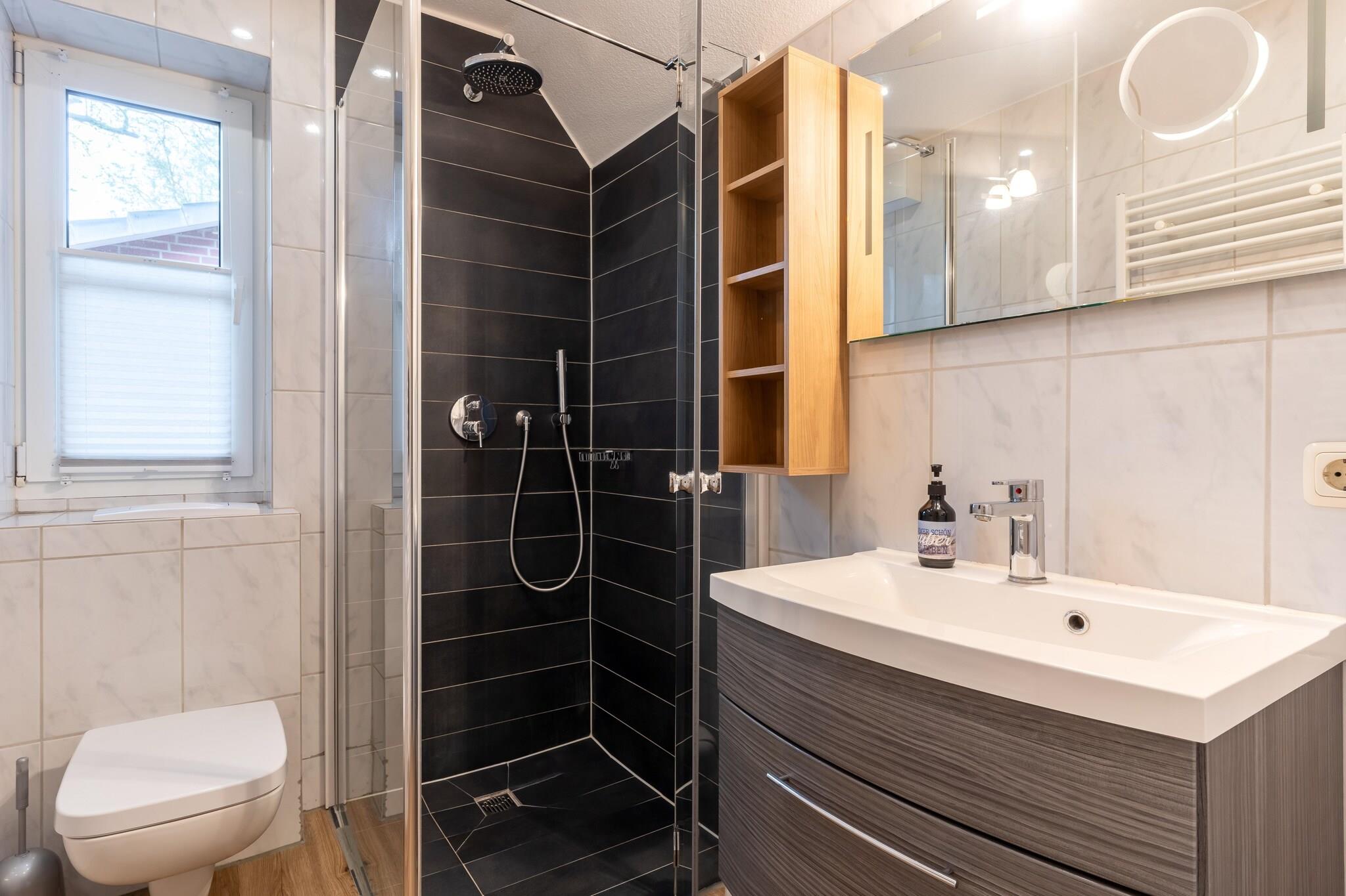 Chik, lille lejlighed i stueetagen i et hus, der engang blev bygget i tresserne i landvillastil og skinner i praktisk talt ny pragt efter omfattende renovering. De i alt 4 lejligheder og lejligheder er moderne indrettet og ligger helt rolig for enden af en blind vej i Ording-kvarteret på en hjørnegrund på over 1.000 kvadratmeter med en sydvestlig orientering. Med sin separate indgang tilbyder denne cirka 31 kvadratmeter store oase dig en behagelig og afslappet atmosfære. Du er også velkommen til at tage din hund med. Den store have med en strandstol inviterer dig til at slappe af - et dejligt alternativ til din egen møblerede terrasse. For nemheds skyld er en vaskemaskine tilgængelig i bryggerset for et mindre gebyr og en tørretumbler (gratis at bruge). Højdepunkter inkluderet: Alle forbrugsbaserede energiomkostninger, sengelinned, håndklæder og slutrengøring WiFi Parkeringsplads Strandstol i fælleshaven Blot 7 minutters gang fra badecentret og cirka 15 minutters gang fra Ordinger Strand tilbyder din bolig den perfekte balance mellem afslapning og nærhed til byens faciliteter. Beliggende direkte på det gamle indre dige og overfor Ordinger Kurwald, finder du ro og afslapning væk fra hverdagens stress og jag. Gå på opdagelse i naturen på de talrige gang- og cykelstier, der starter lige uden for hoveddøren, og opdag Fitnessparken Nordsøen samt 12 skiltede cykelture af forskellig længde. Den omfattende Ordinger-strand med sin unikke størrelse og den lille forskel mellem lav- og højvande indbyder til ubekymrede badeoplevelser, uanset tidevandet.