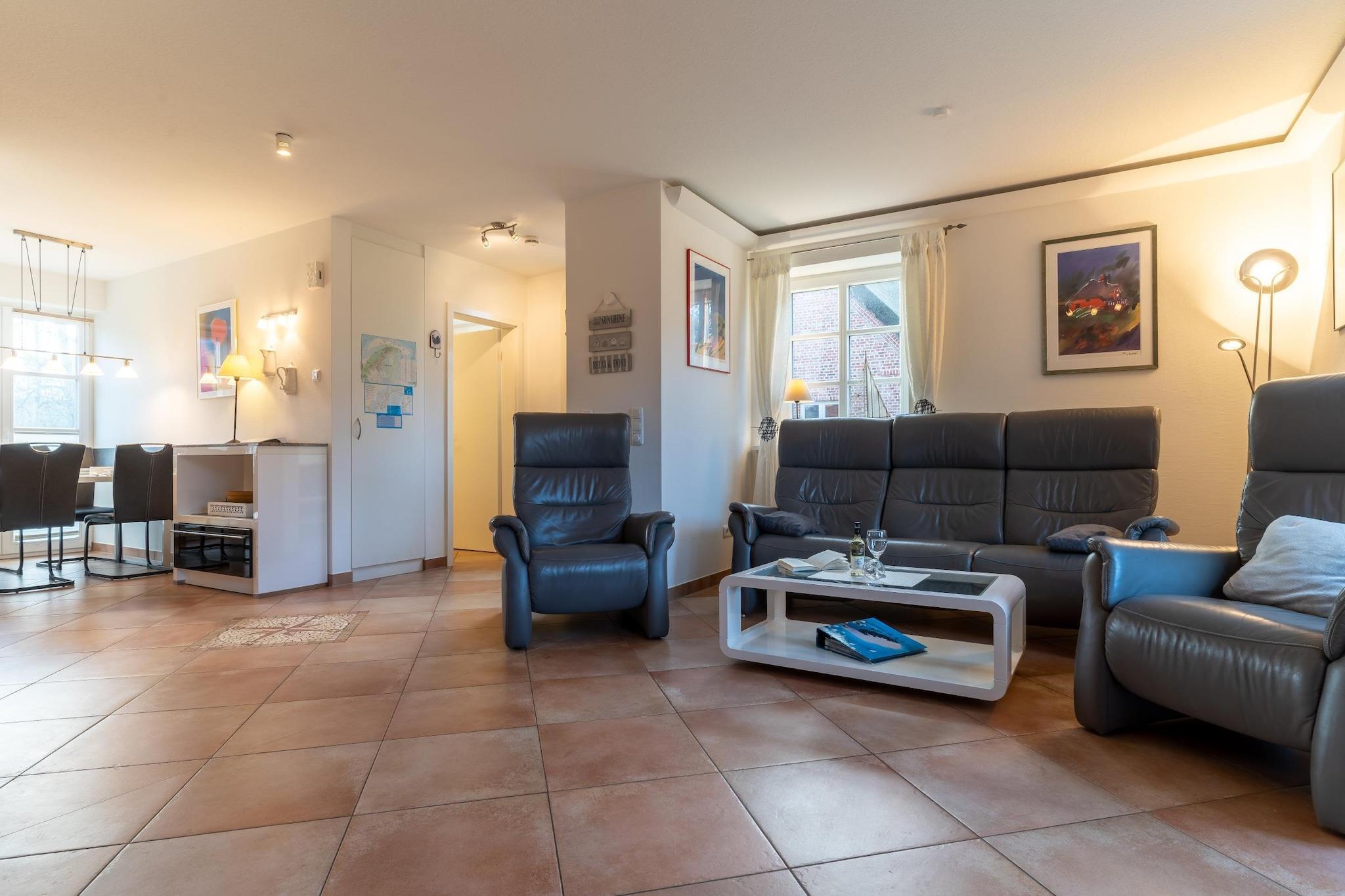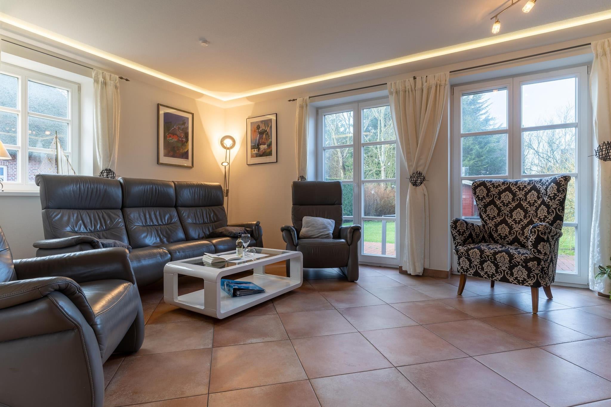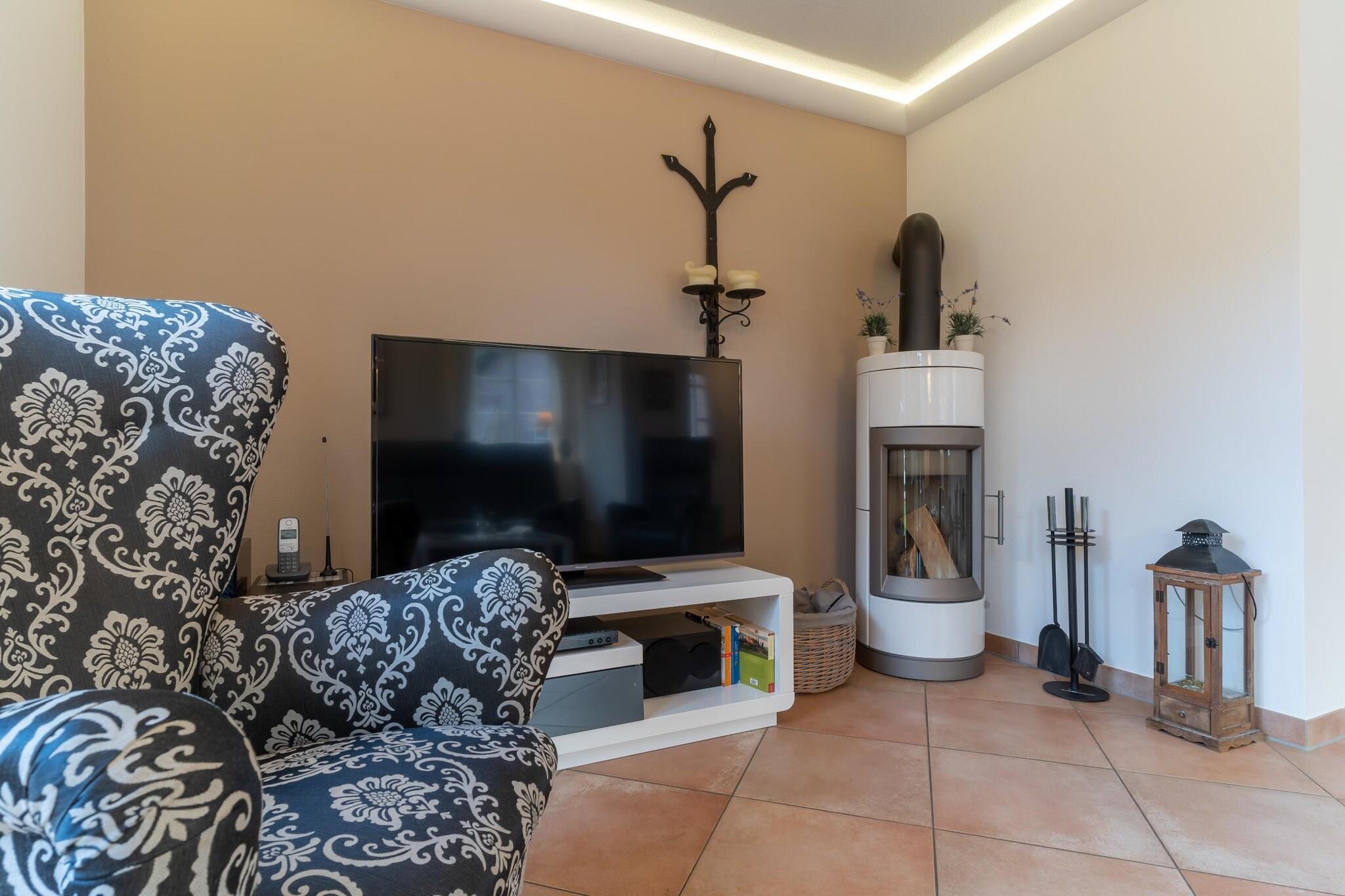 Komfortabelt indrettet dobbelthus til din familieferie med din hund, kun et stenkast fra Ordinger Strand. Det charmerende feriehus byder på 100 kvadratmeter og tre niveauer nok plads til op til 6 personer og din elskede firbenede ven. Gå ind i huset og bliv mødt af et rummeligt indgangsparti med et stilrent klædeskab. Den åbne stue-spisestue imponerer med sin højkvalitets, moderne indretning og skaber en feel-good atmosfære, der inviterer dig til at slappe af. Takket være gulv-til-loft vinduer er rummet oversvømmet med naturligt lys og byder på en vidunderlig udsigt over haven. På kølige aftener giver pejsen hyggelig varme og hyggelige timer. Fra stuen og det halvåbne, moderne køkken er der direkte adgang til de to terrasseområder og husets velholdte have. Her inviterer havemøbler og liggestole til at slappe af og solbade - det ideelle sted at slappe af. En elegant trætrappe fører dig til første sal, hvor to af de tre soveværelser venter på dig. Det første soveværelse er udstyret med en komfortabel dobbeltseng (180x200 cm), et ekstra fjernsyn og en praktisk indbygget garderobe. I det andet soveværelse finder du to enkeltsenge (90x200 cm), ligeledes med TV og indbygget garderobe. Loftet byder på to mere komfortable sovepladser i enkeltsenge (2x90x200 cm) sat sammen. Højdepunkter inkluderet: Alle forbrugsbaserede energiomkostninger, sengelinned, håndklæder og slutrengøring WiFi Parkeringsplads Udover komforten i dit feriehus, kan du også nyde faciliteterne i det omkringliggende område. Udforsk de maleriske gader i St. Peter-Ording, slap af på de nærliggende strande eller nyd de mange restauranter og caféer i området. Glæd dig til afslappende dage på Nordsøkysten!