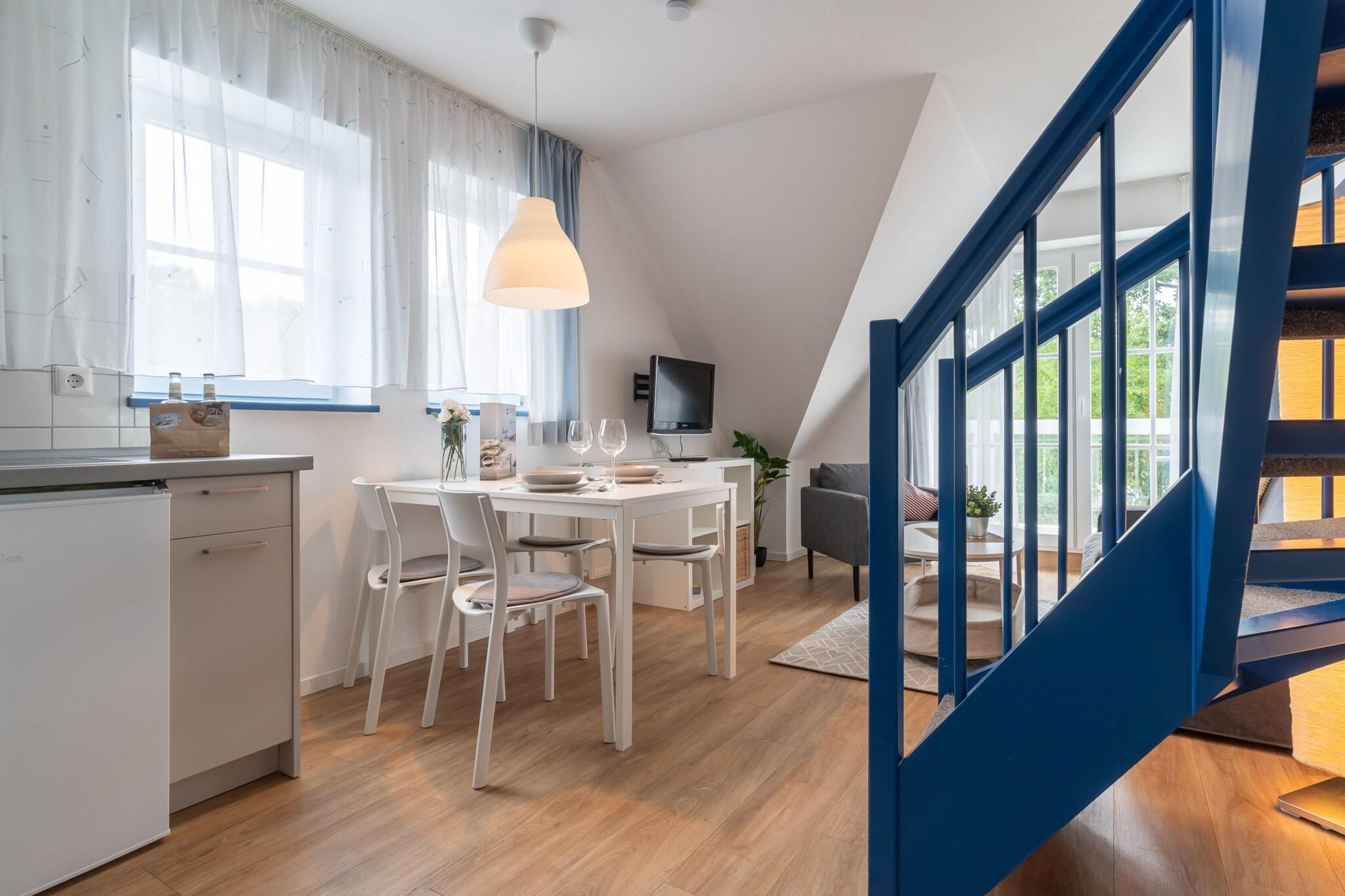På 1. etage: (åbent køkken(spisebord, brødrister, komfur(Komfur med fire kogeplader, elektrisk), kaffemaskine, mikrobølgeovn, opvaskemaskine ), stue / spisestue(Fjernsyn, radio), soveværelse(enkeltseng), badeværelse(bruser, toilet)) Loft: (åbent rum(dobbeltseng)) balkon, varme(gas), have(deles med andre gæster), havemøbler, parkering, Vaskeripakke inkl.