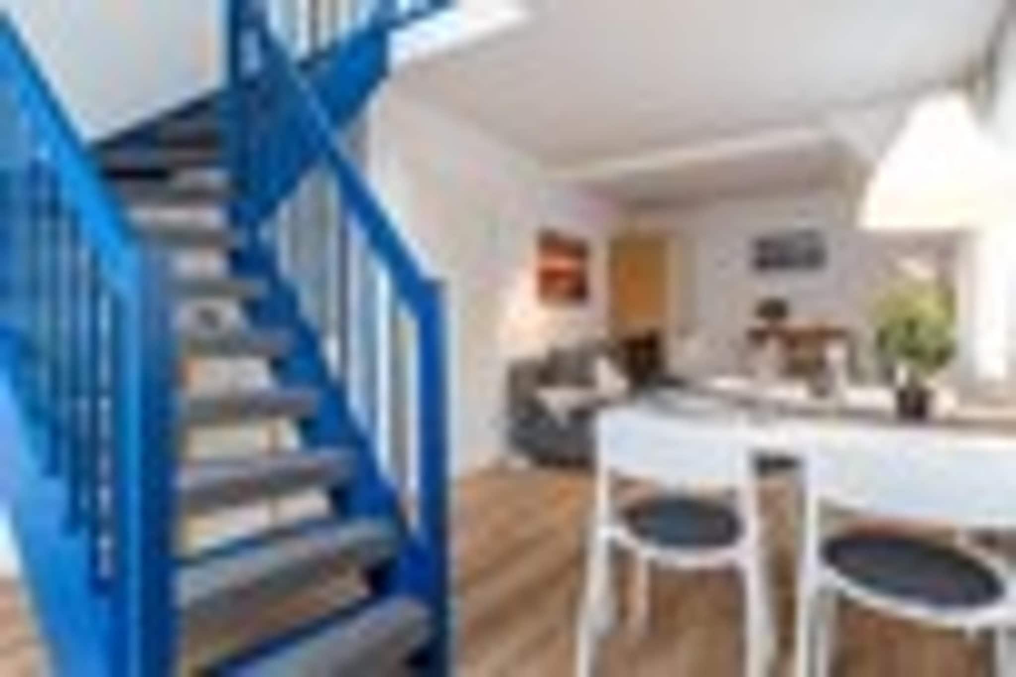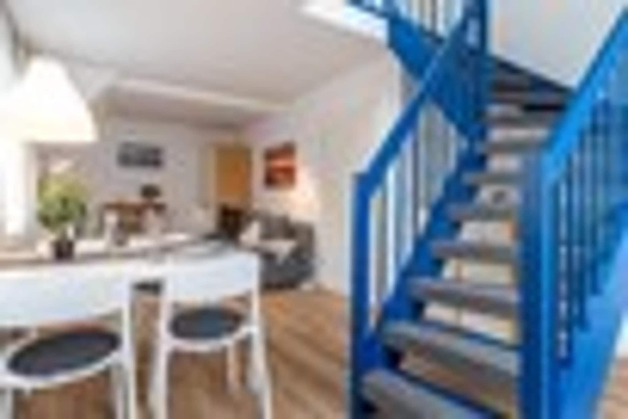 På 1. etage: (åbent køkken(elkedel, brødrister, komfur(Komfur med fire kogeplader, elektrisk), kaffemaskine, ovn, opvaskemaskine , køleskab(+ fryser)), stue / spisestue(enkeltsovesofa, Fjernsyn, radio), badeværelse(bruser, håndvask, toilet, føntørrer)) På 2. etage: (svalegang soveværelse(enkeltseng, enkeltseng, halvandenmandsseng)) varme(gas), parkering, Vaskeripakke inkl.