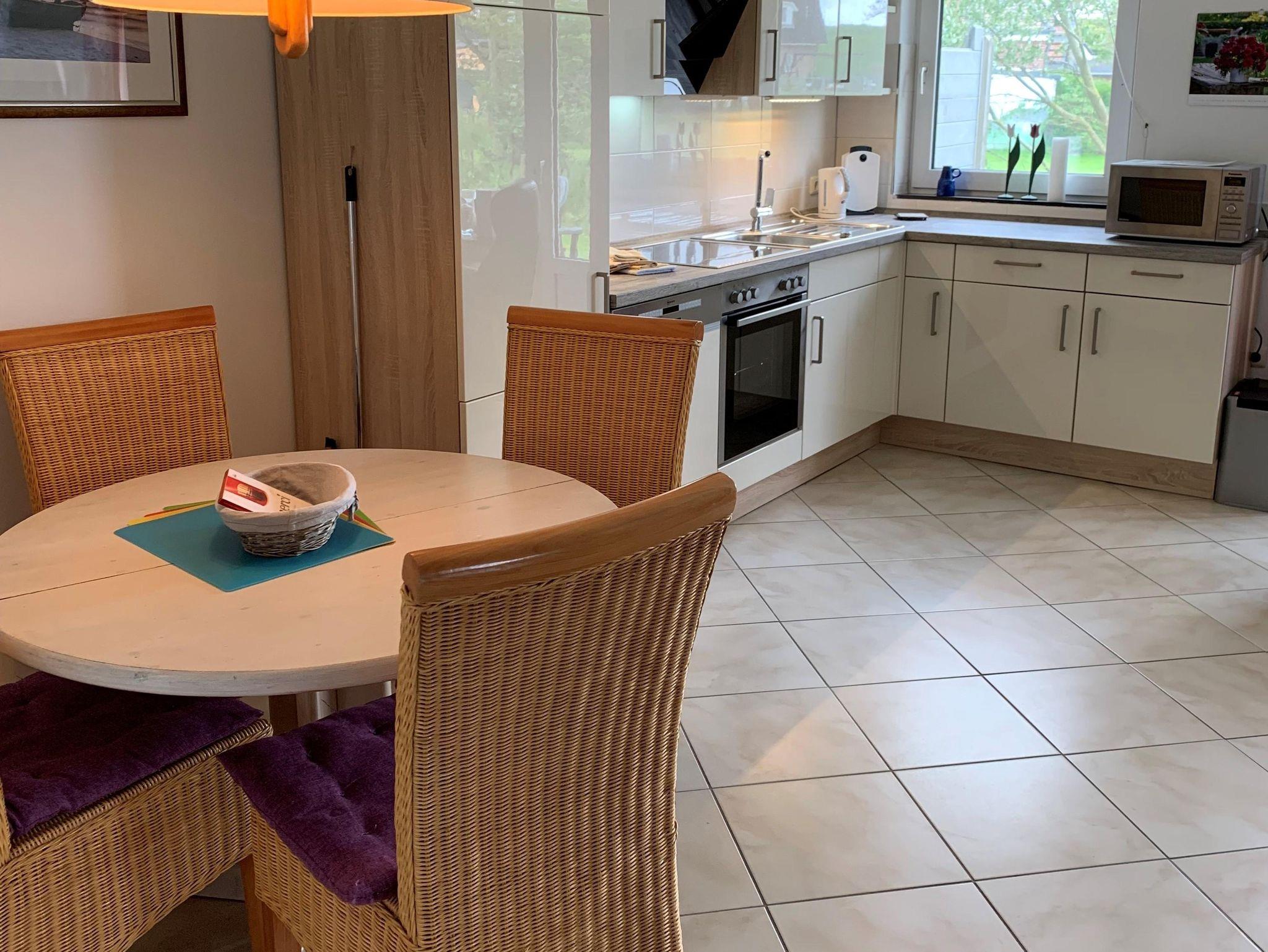 Die Ferienwohnung 1 ist modern und gemütlich eingerichtet und verfügt über einen Wohn- und Essraum mit einer komplett ausgestatteten Küchenzeile incl. Geschirrspüler und Backofen, ein sep. Schlafzimmer mit Doppelbett und ein Kinderzimmer mit Etagenbett sowie Duschbad und Sonnenterasse.
