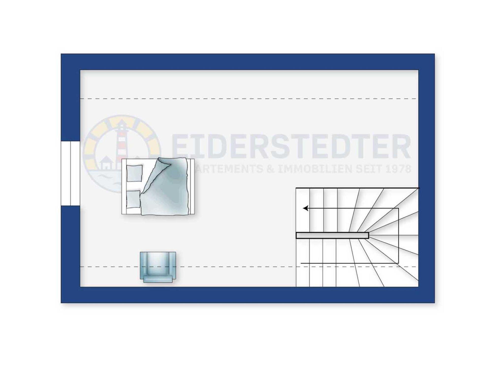 3. Schlafzimmer (Galerie, halboffen zum Treppenflur) mit franz. Doppelbett (140x200cm).