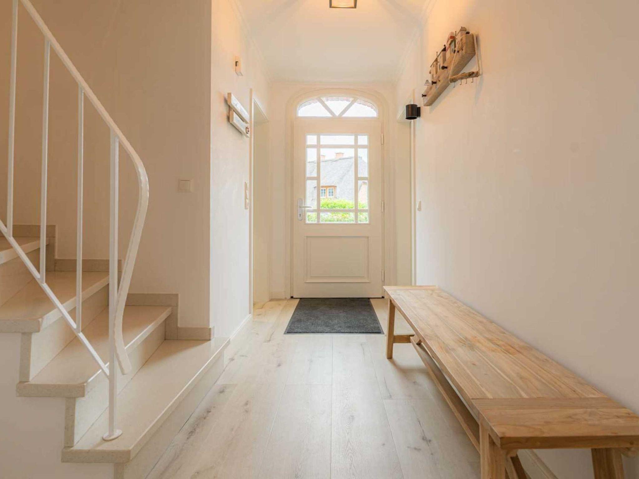 Flur mit Garderobe und Natursitzbank im Eingangsbereich. Gäste-WC mit Tageslicht. Abstellraum unter der Treppe. Heizungsraum. Abstellraum im OG-Flur mit Waschmaschine und Trockner.