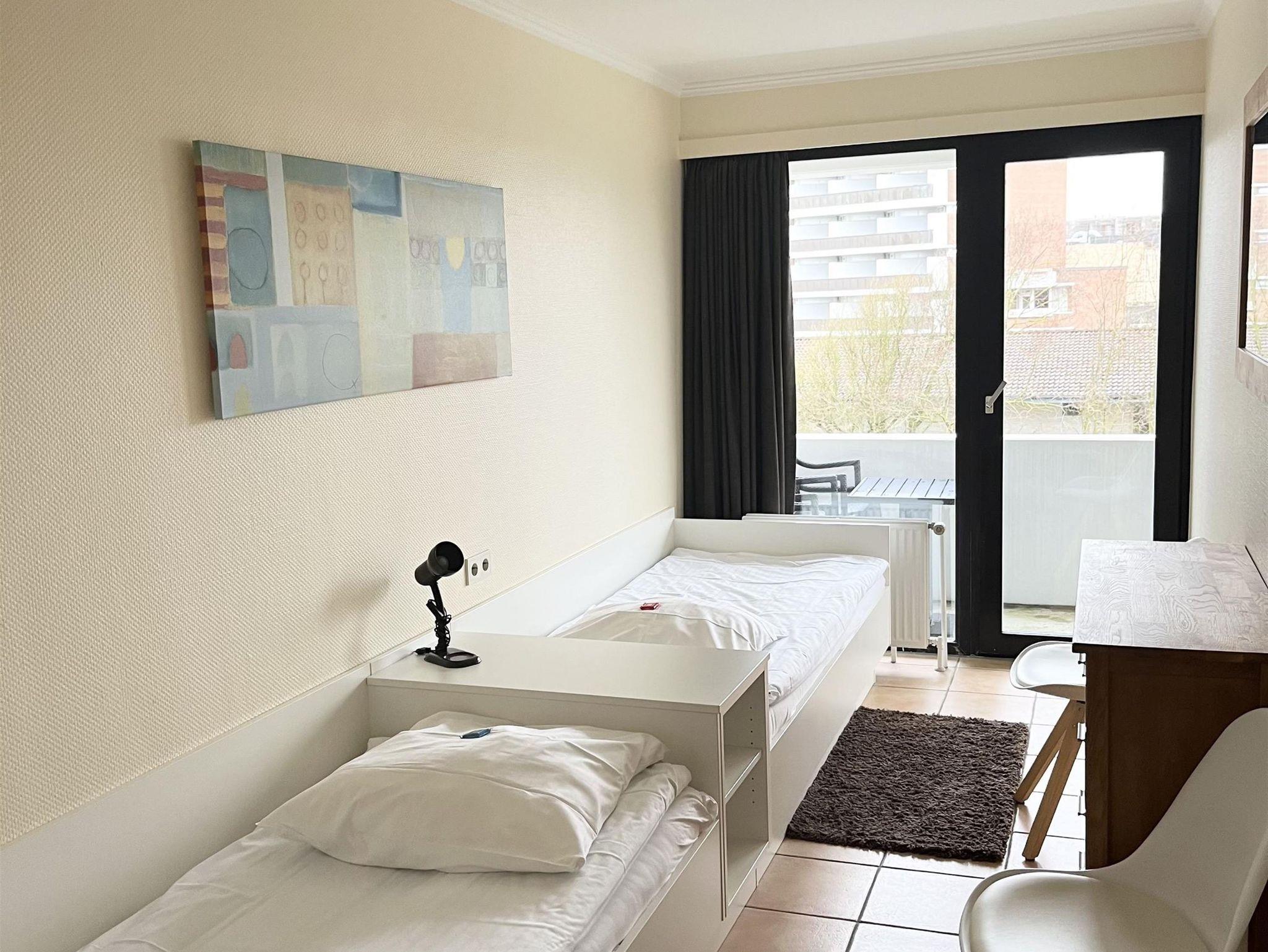 Schlafraum mit 2 Einzelbetten, Wohn-Schlafraum mit 2 Wandschrankbetten, Fußboden gefliest, Sitzecke, Essecke, Küchenzeile mit Mikrowelle, Dusche/WC, Durchwahltelefon, Kabel-TV, Balkon, PKW-Platz Nr. 53, Aufzug im Haus und Fahrradkeller.