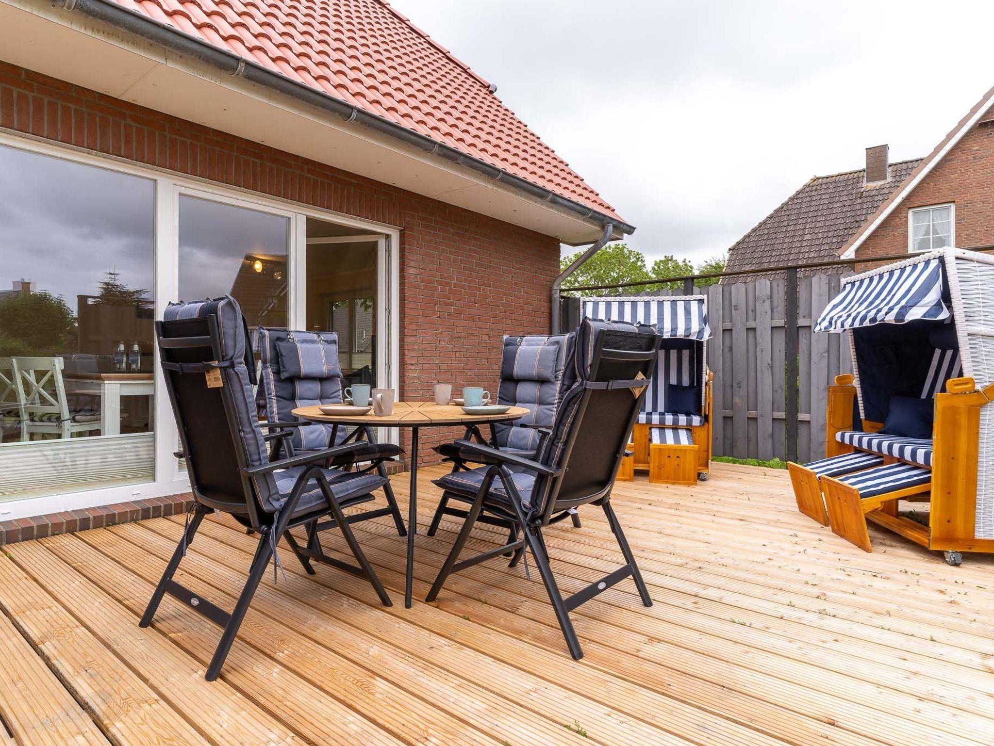 Das Haus befindet sich in einer verkehrsberuhigten Straße im Ortsteil Ording. Nur wenige Gehminuten entfernt vom Starnd und vom Ponderosa Kinderspielplatz.