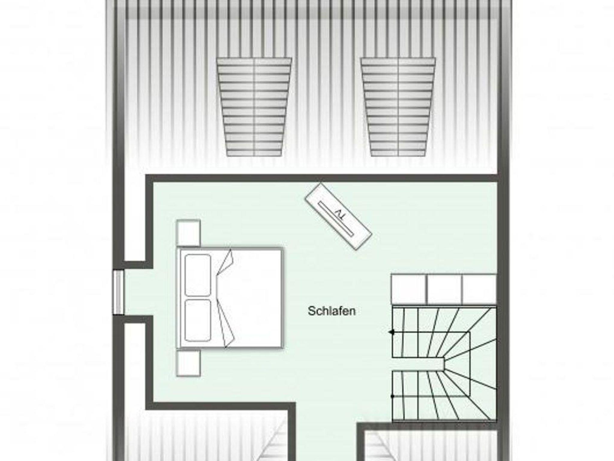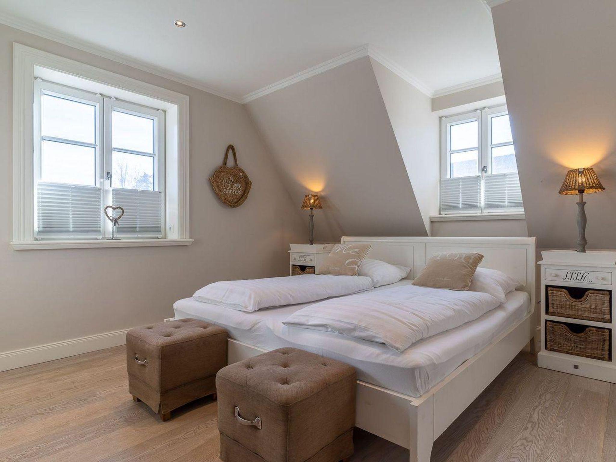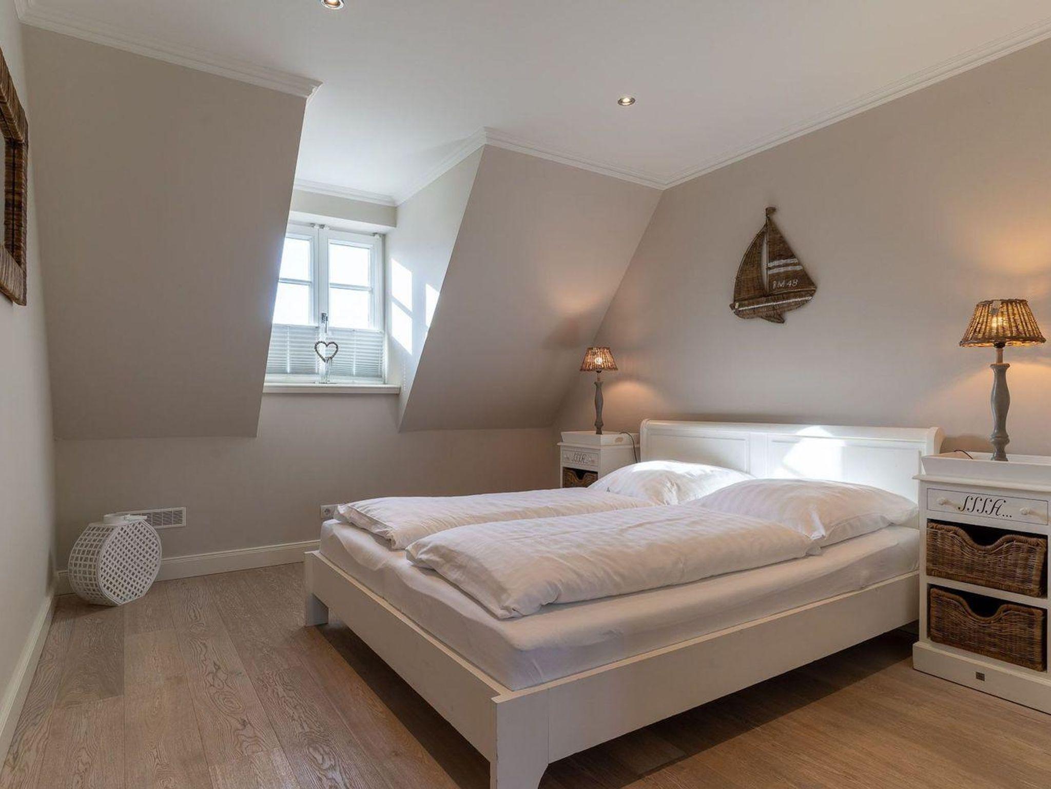 Über eine weitere Holztreppe geht es vom Flur ins Dachgeschoss mit gemütlichem Doppelbett und Flatscreen TV+DVD.