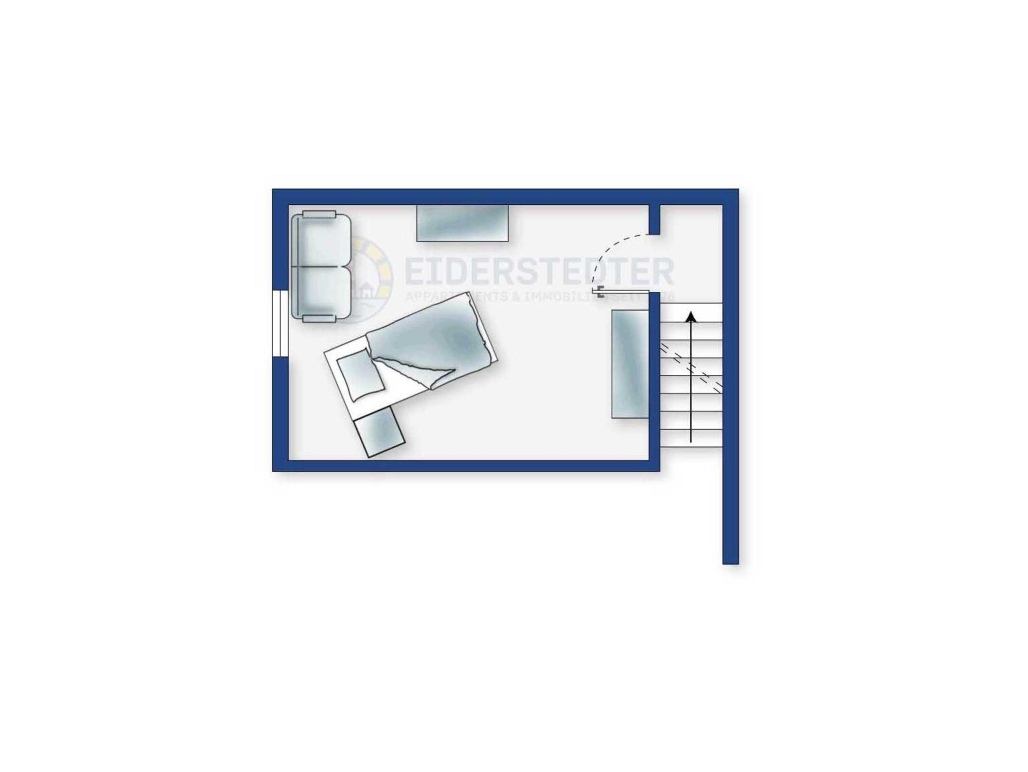 2. Schlafzimmer mit franz. Doppelbett (120x200cm), Kleiderschrank, Ruhesessel und Stereo-Kompaktanlage mit CD-Spieler.