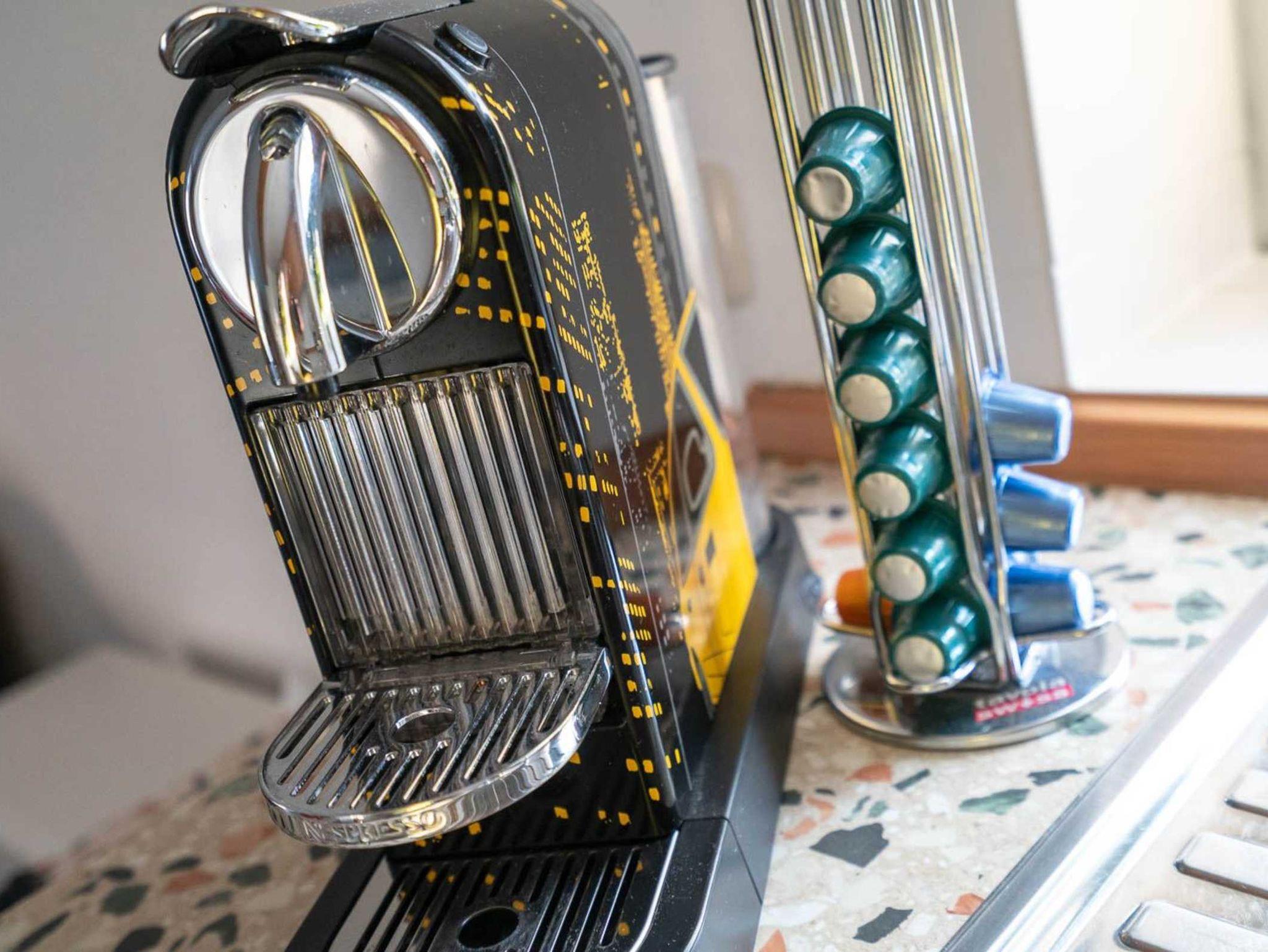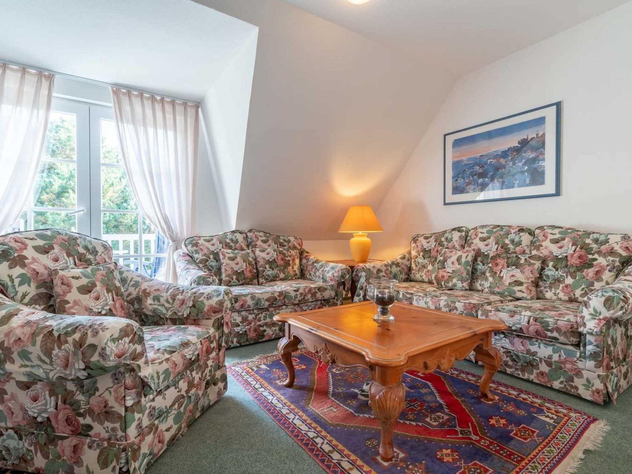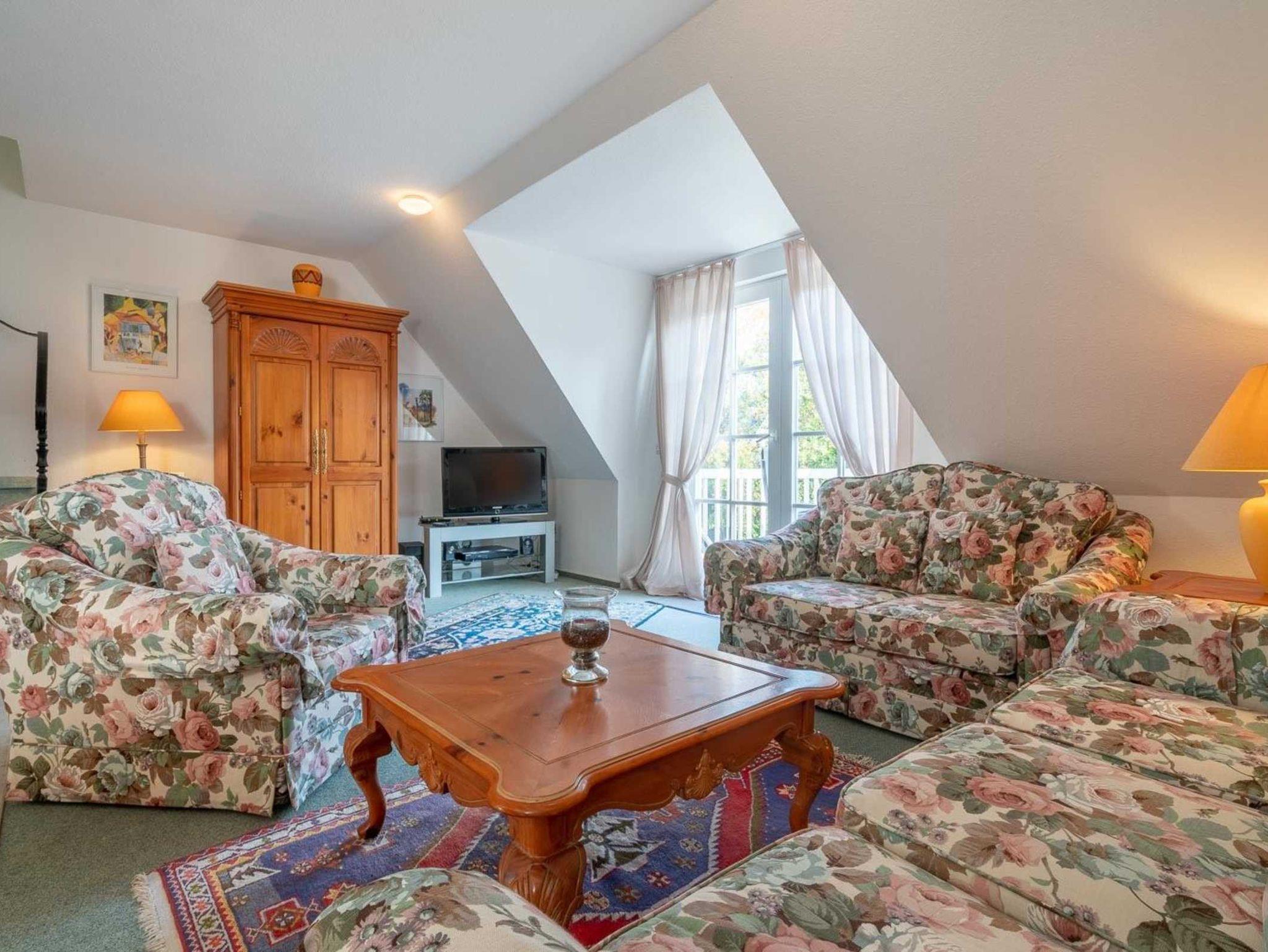Wohnzimmer mit 2 Sofas (für 3 bzw. für 2 Personen), einem Sessel, großem TV (Kabel), BluRay-Player und Esstisch für 3 Personen. Direkter Zugang zum möblierten Balkon nach Südosten mit Blick in den schönen Rosengarten. Offene Küche mit Kühlschrank mit Gefrierfach, Backofen-Mikrowelle mit Backfunktion, Waschtrockner und De Longhi-Nespresso Kapsel-Kaffeemaschine.