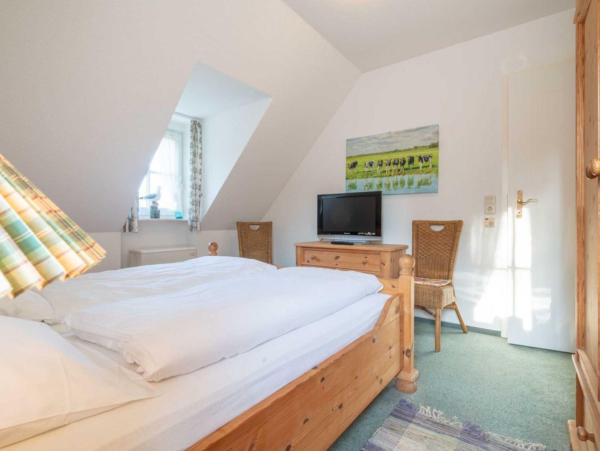 1. Schlafzimmer mit Doppelbett (2x 80x200cm), TV (Kabel), Kleiderschrank, Kommode und 2 Stühlen.