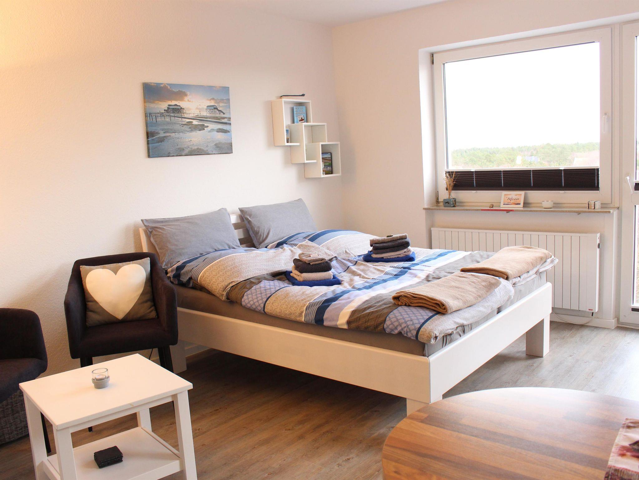 Das Appartement verfügt über ein Wohn-/Schlafzimmer mit LCD-TV (Sat), DVD-Player und Stereoanlage mit MP3 Player.