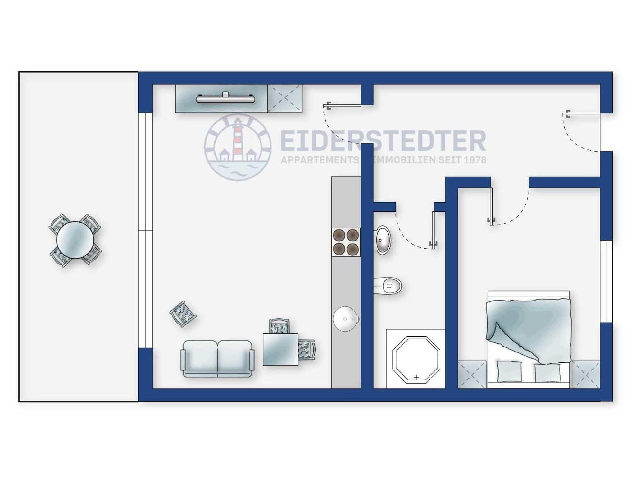 Gemütliche 2-Zimmer-Ferienwohnung im Haus Dreilanden mit ca. 40 m² auf 1 Ebene (EG) für bis zu 2 Personen. In ausgesprochen zentraler Lage im Ortsteil Bad in St. Peter-Ording. Zum Strand sowie zu allen Restaurants und Geschäften des Kurzentrums sind es nur wenige Meter zu Fuß. Auch die Dünentherme ist bequem erreichbar.