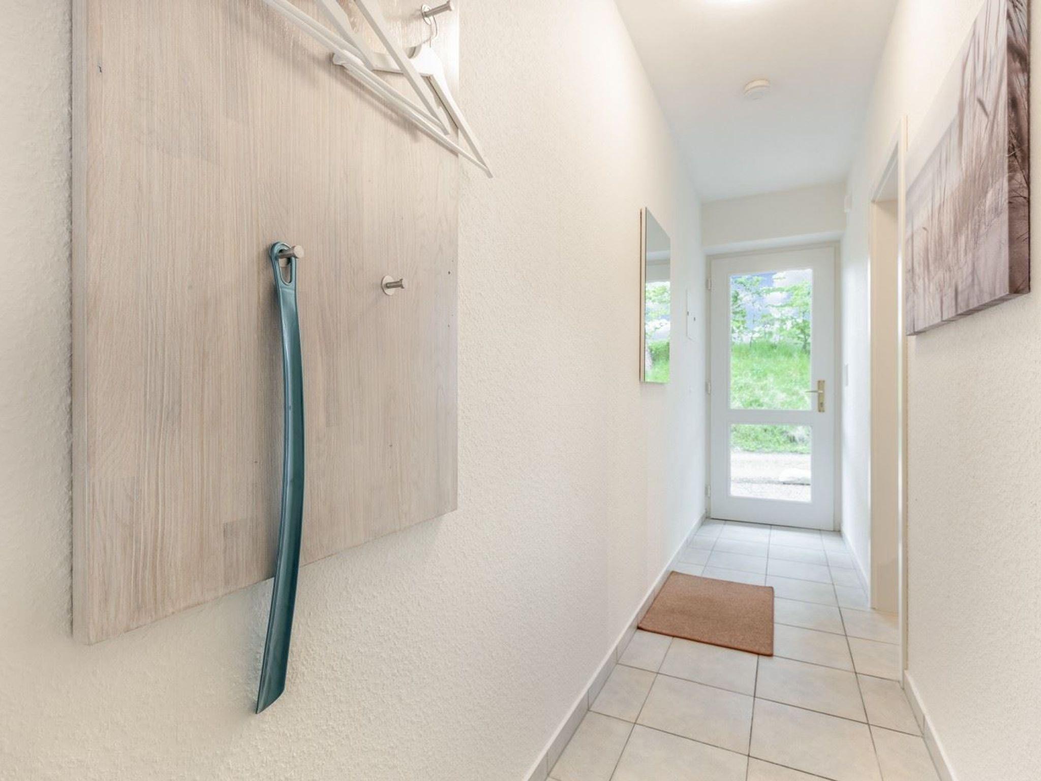 Flur mit Garderobe und Spiegel im Eingangsbereich.
